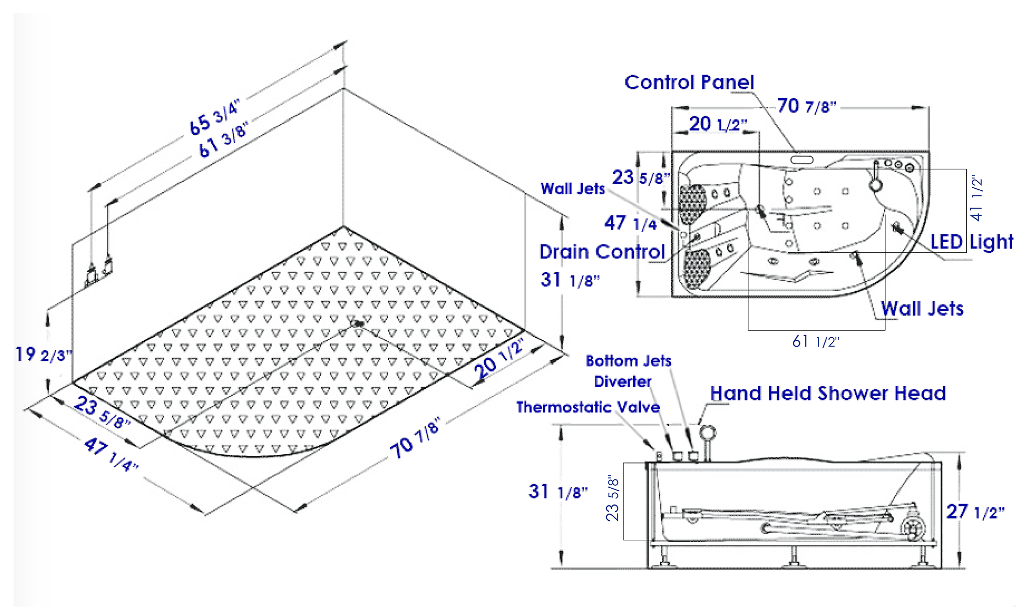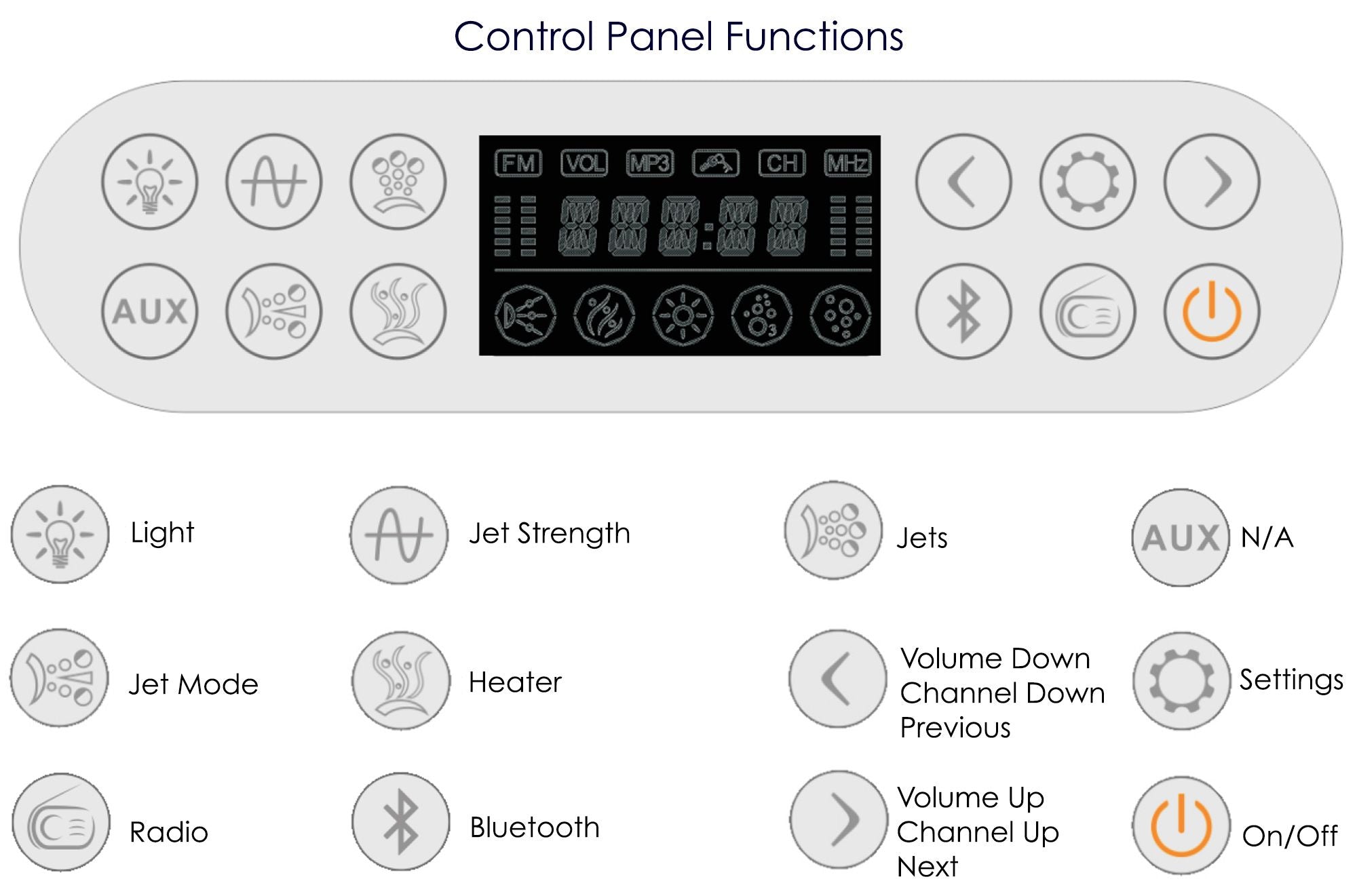 - Control everything with Keypad Control Panel. It operates the jets, inline heater, digital sound system, chromotherapy lighting and includes child lock.