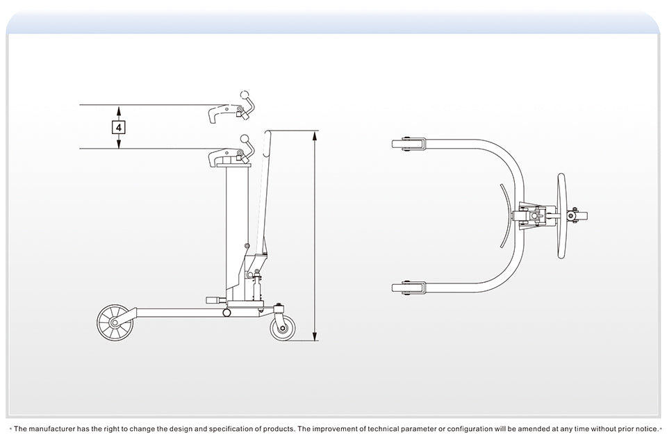 Eoslift USA Superior (Industrial Grade) heavy duty drum transporter is constructed with German engineered reinforced steel structure. 55-Gal capacity, Polyurethane Wheels, Steel Hubs, 11 in. Raised Height, 23.6 in. Flexible and compact design, special claw enhances moving with two big size rollers and one caster wheel. The straddle legs provide better stability and handling of the drum. Spring-loaded steel jaws securely grip the top lip of the drum. Max Diameter. 3-Years Limited Warranty.