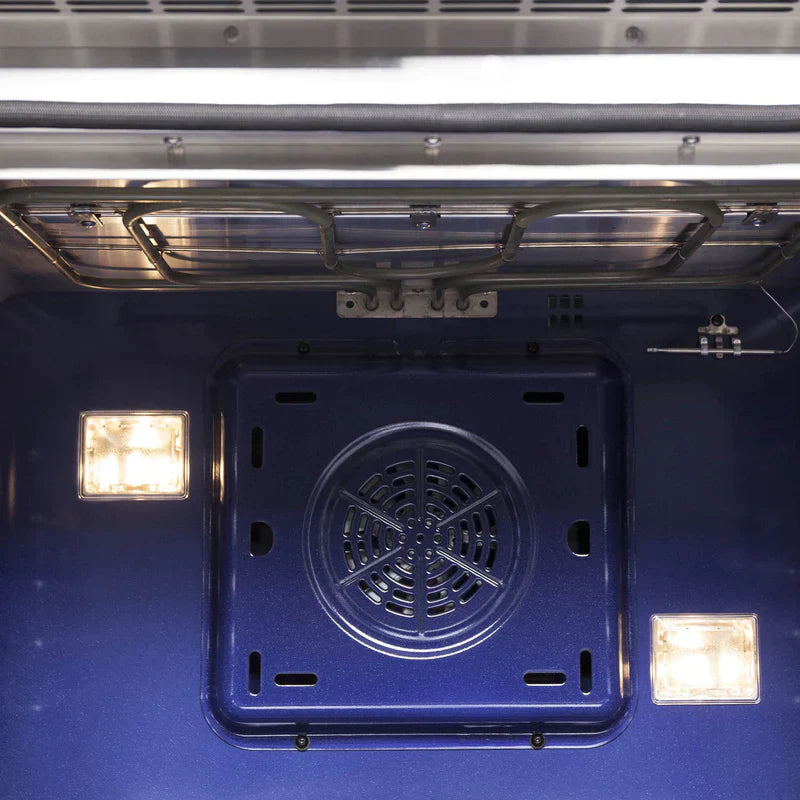 • High-End Oven & It's Features: The 30" oven features a 4.32 cu.ft. capacity with 6,300 Watt broil and bake output, blue enameled interior, 3 telescopic electroplated oven racks and 2 halogen lights. A 3 layer glass oven door window, U-Tube auto-ignition and convection fan ensures even temperature distribution throughout the oven cavity. Includes Air Fryer Rack & Drip Pan.