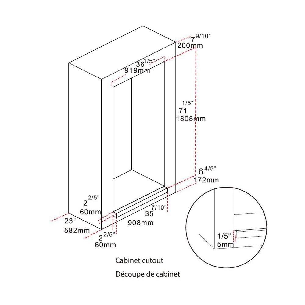 35.9''W x 70.20"H x 27.8''D (without the grill)