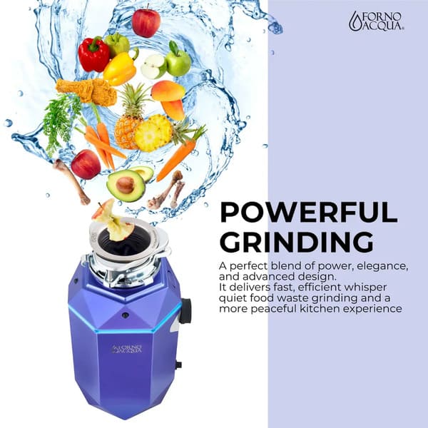 Experience a quieter, smarter kitchen with the FORNO Acqua BrightDiamond 3/4HP Garbage Disposal—a powerful, whisper-quiet waste solution that fuses innovation with elegance. Featuring a 3/4 horsepower permanent magnet motor, high-efficiency grinding, and a 270º BrightDIAMOND motion-activated LED cabinet light, this disposal unit brightens your workspace while keeping waste out of sight and out of mind. Thoughtfully engineered for seamless installation, it includes a pre-wired air switch and plug-in cord for effortless setup.