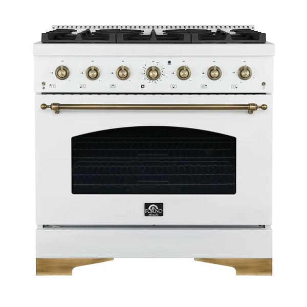 Forno Antico 36-Inch Gas Range with 6 Sealed Burners and 4.5 Cu.Ft. Convection Oven – Black or White with Antique Brass Trim