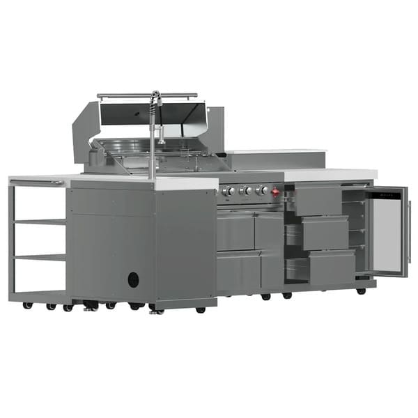 Forno Bulnes 40-Inch Outdoor Kitchen with Beverage Center, Rotisserie & Side Burner – Black or White Stone Countertops