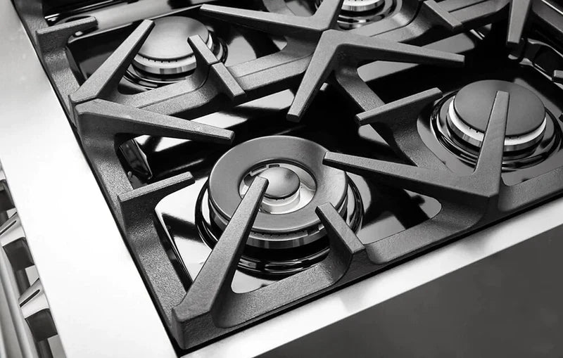 - Heavy-Duty Continuous Cast Iron Grates provide even heat distribution and stable cookware mobility