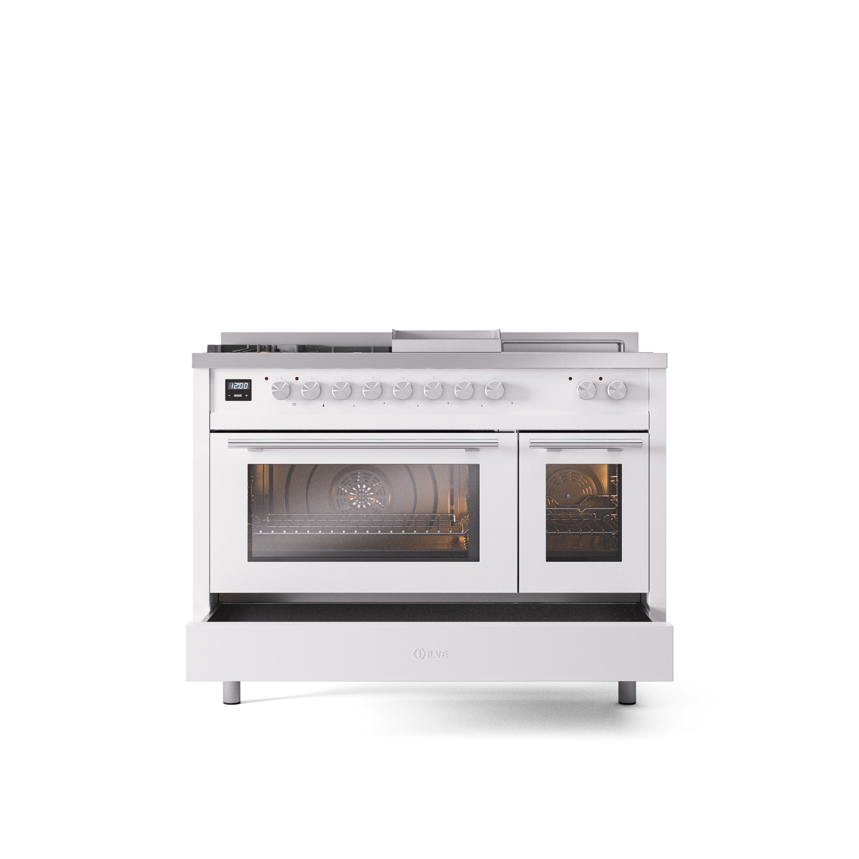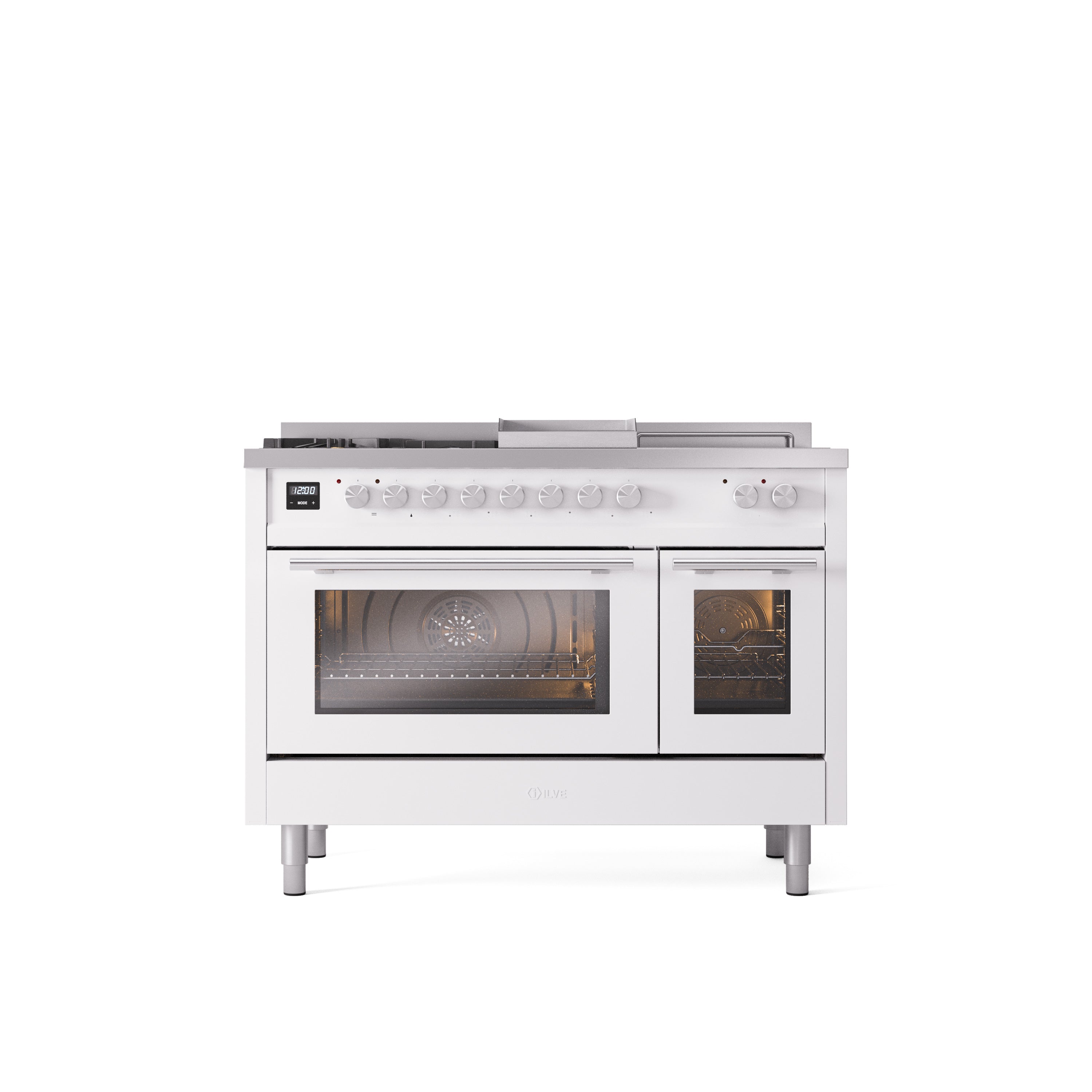 ILVE Professional Plus II 48" Dual Fuel Range with 5 Sealed Burners Griddle French Top Triple Glass Door - UP48FSWMP