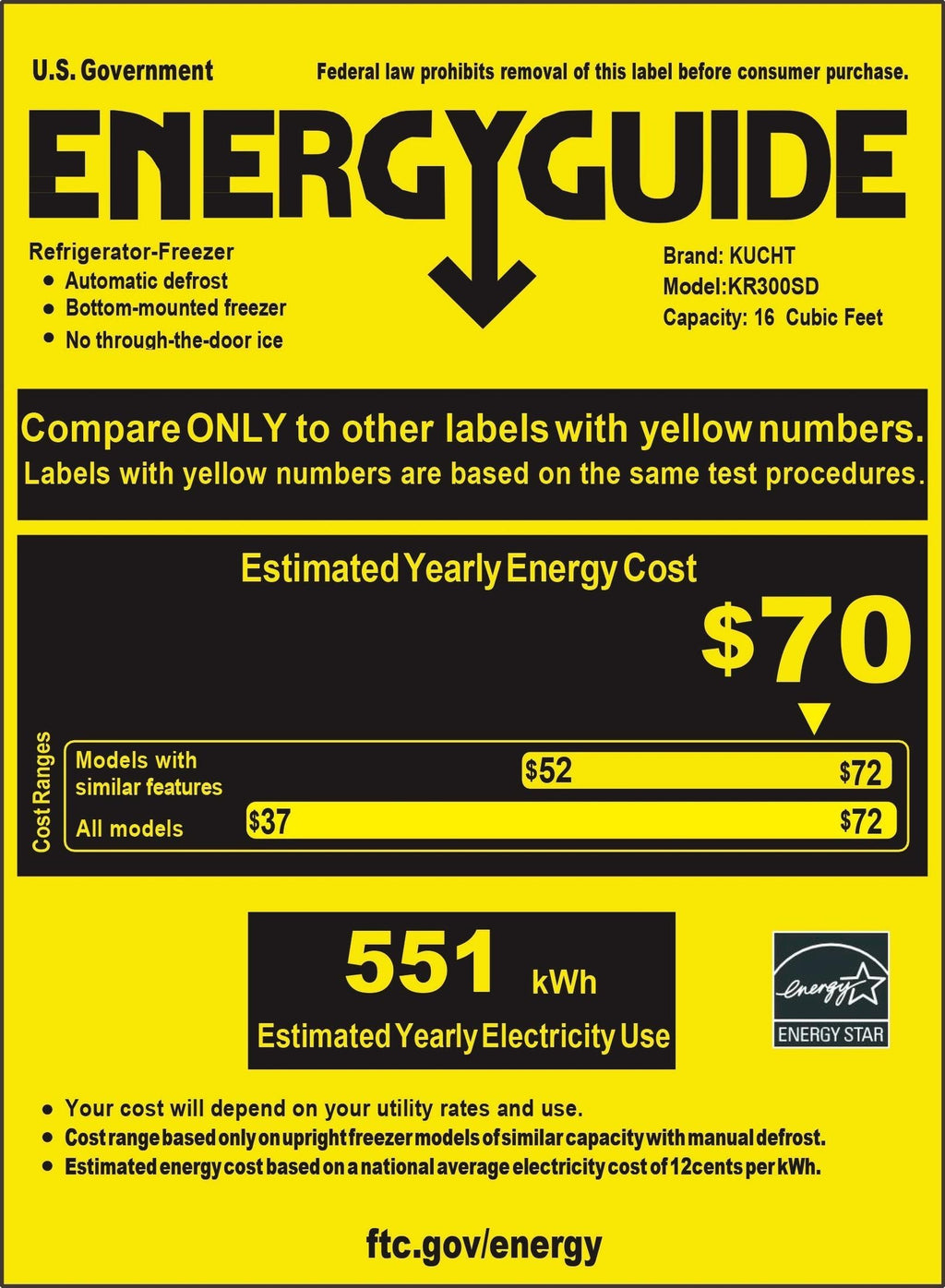 The Kucht KR300SD Refrigerator has a modern and sophisticated aesthetic with a new design of more robust doors. Inside, it is divided with glass shelves to optimize organization and storage. Its total storage capacity is 17 cu. ft.. The automatic defrost system makes it easy to clean the refrigerator.
