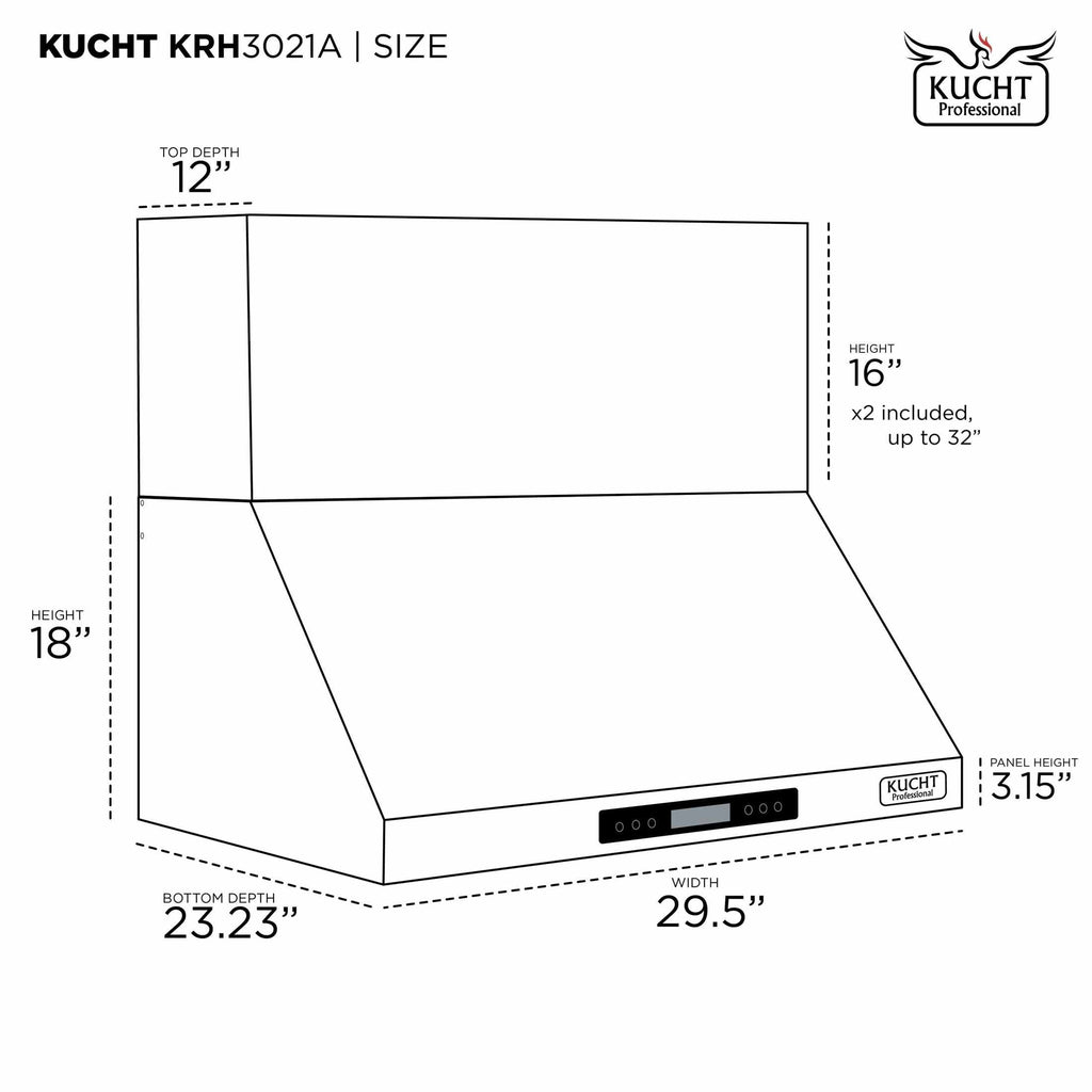 Kucht 30" Professional Wall Mounted Range Hood 900 CFM in Stainless Steel (KRH3021A)