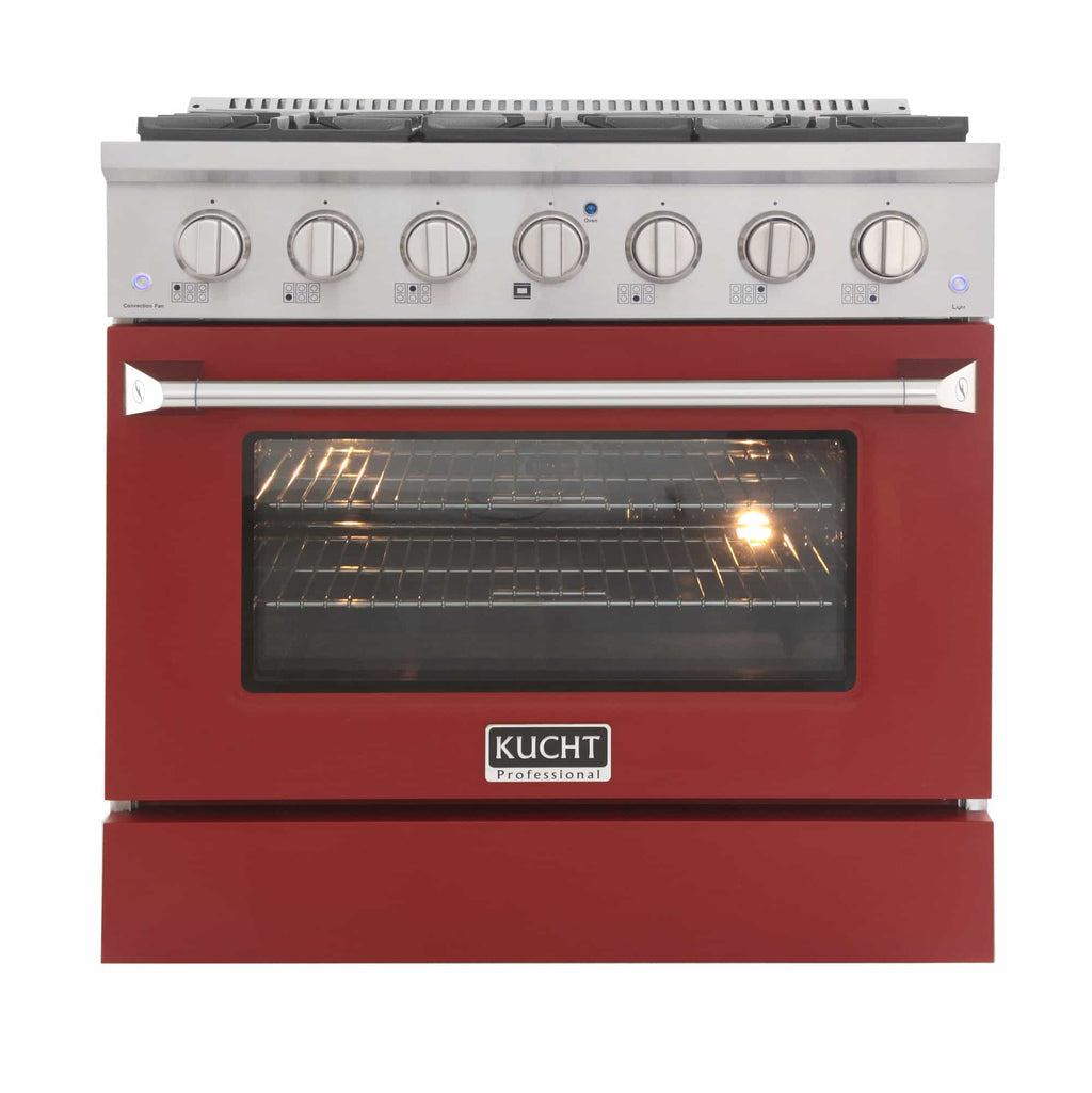 KUCHT Professional 36 in. 5.2 cu. ft. Range with Sealed Burners and Convection Oven in Stainless Steel with Red Oven Door