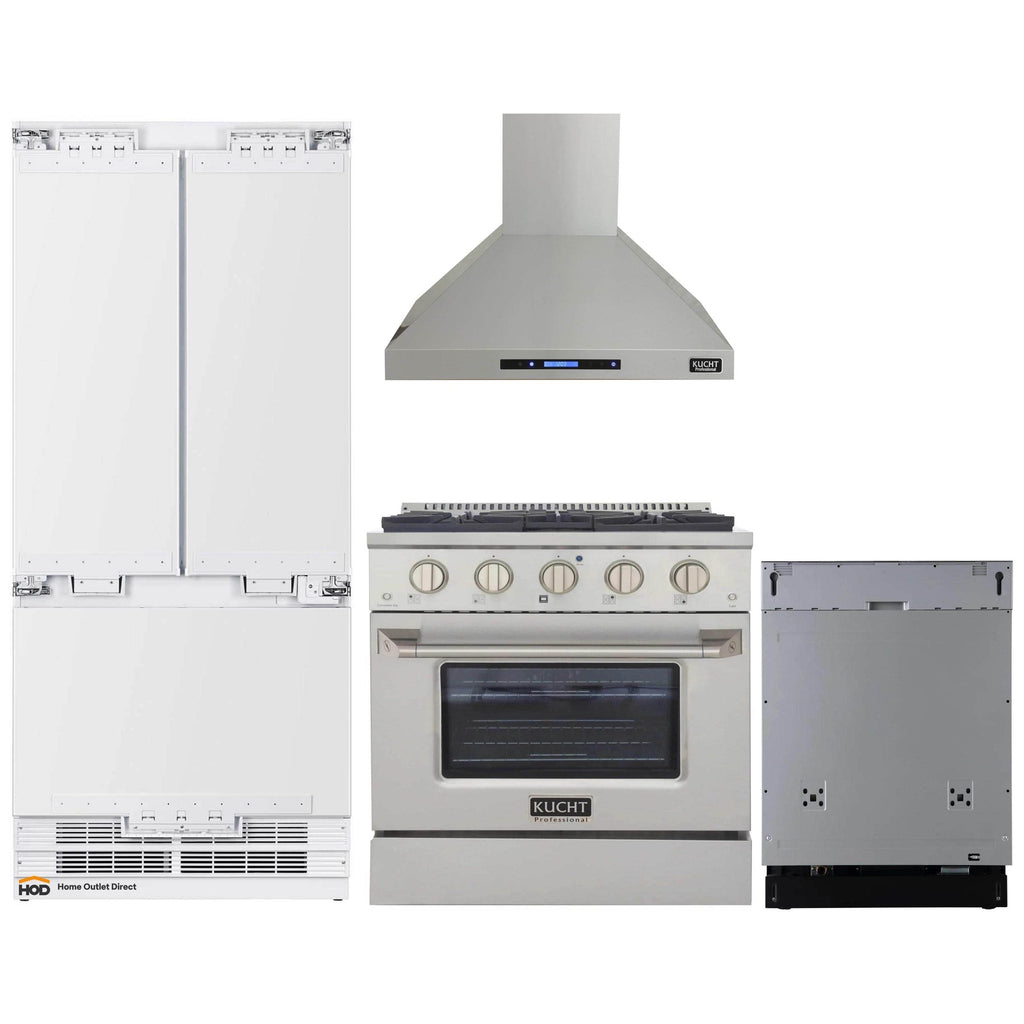 Kucht 4-Piece Appliance Package – 30-Inch Dual Fuel Range, 36-Inch Panel Ready Refrigerator, Wall Mount Hood & Panel Ready Dishwasher