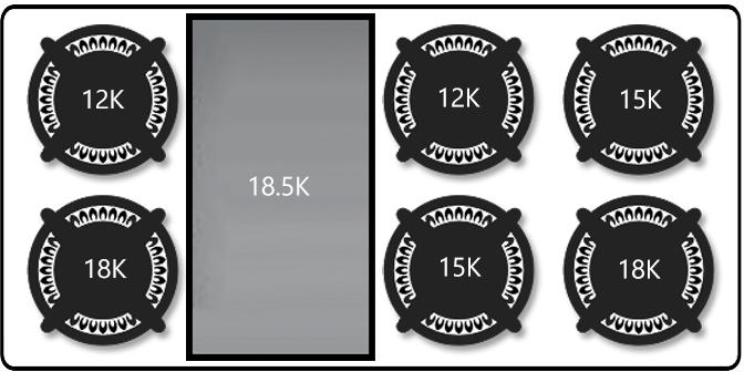 - 2 x 18,000 BTU burners / 2 x 15,000 BTU dual-flame burners with simmer / 2 x 12,000 BTU burners / 1 x 18,500 BTU Griddle