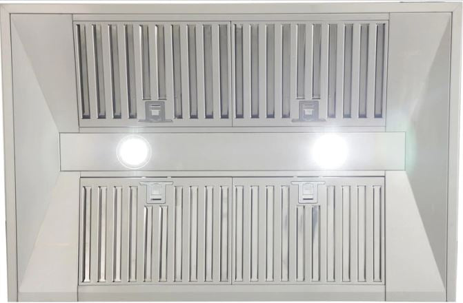 • Easy to Maintain This stylish range hood comes with two stainless steel baffle filters that are also dishwasher friendly