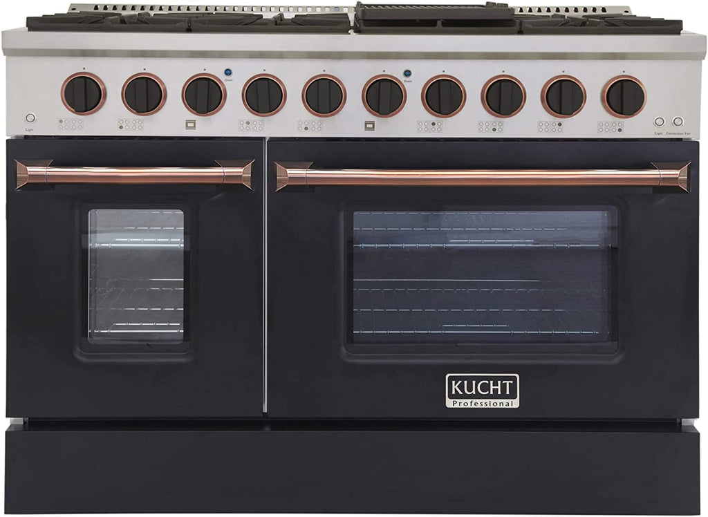 Kucht Signature 48" 6.7 cu ft. Gas Range with Black Door and Rose Gold Accents (KNG481-K-ROSE)