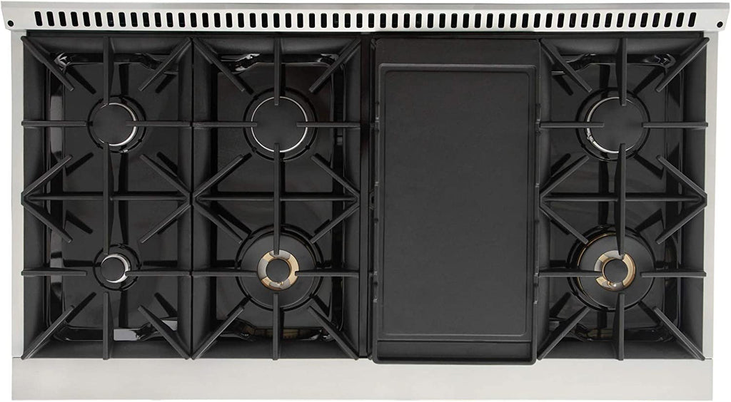 Boasting 8 Individual Burners. Two high intensity 20,000 BTU dual flame triple crown burners with extra low simmer, two 9,000 BTU burners, two 12,000 BTU burners and two 6,000 BTU burners.