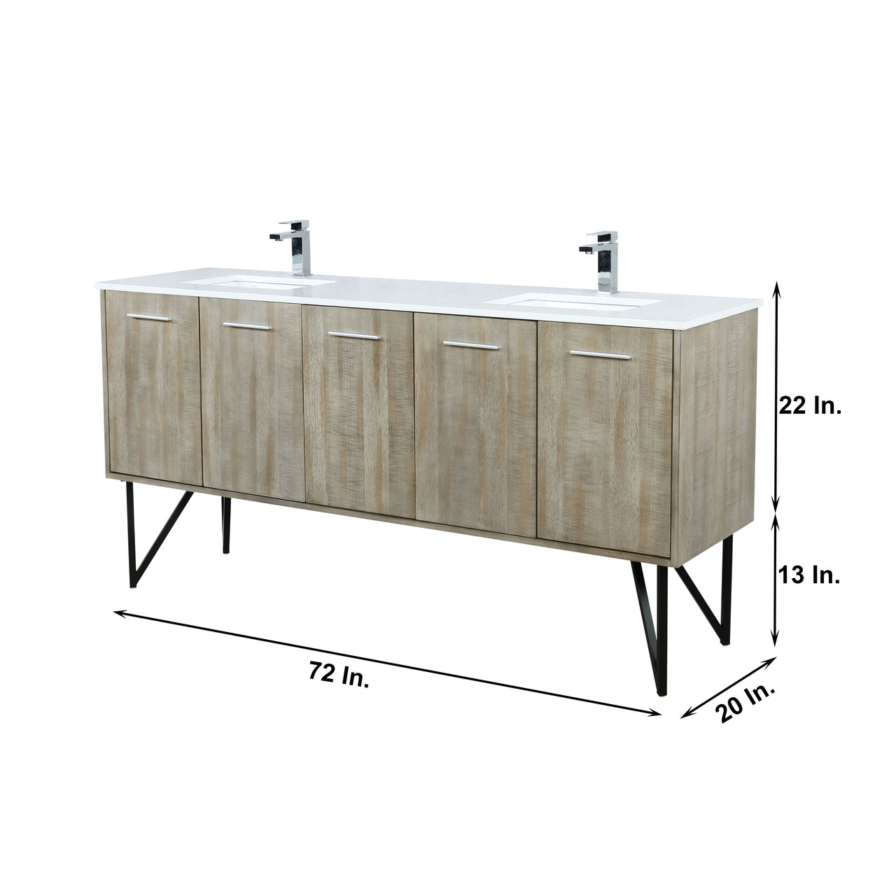 - Vanity Dimensions: 72" W x 20.38" D x 36.25" H