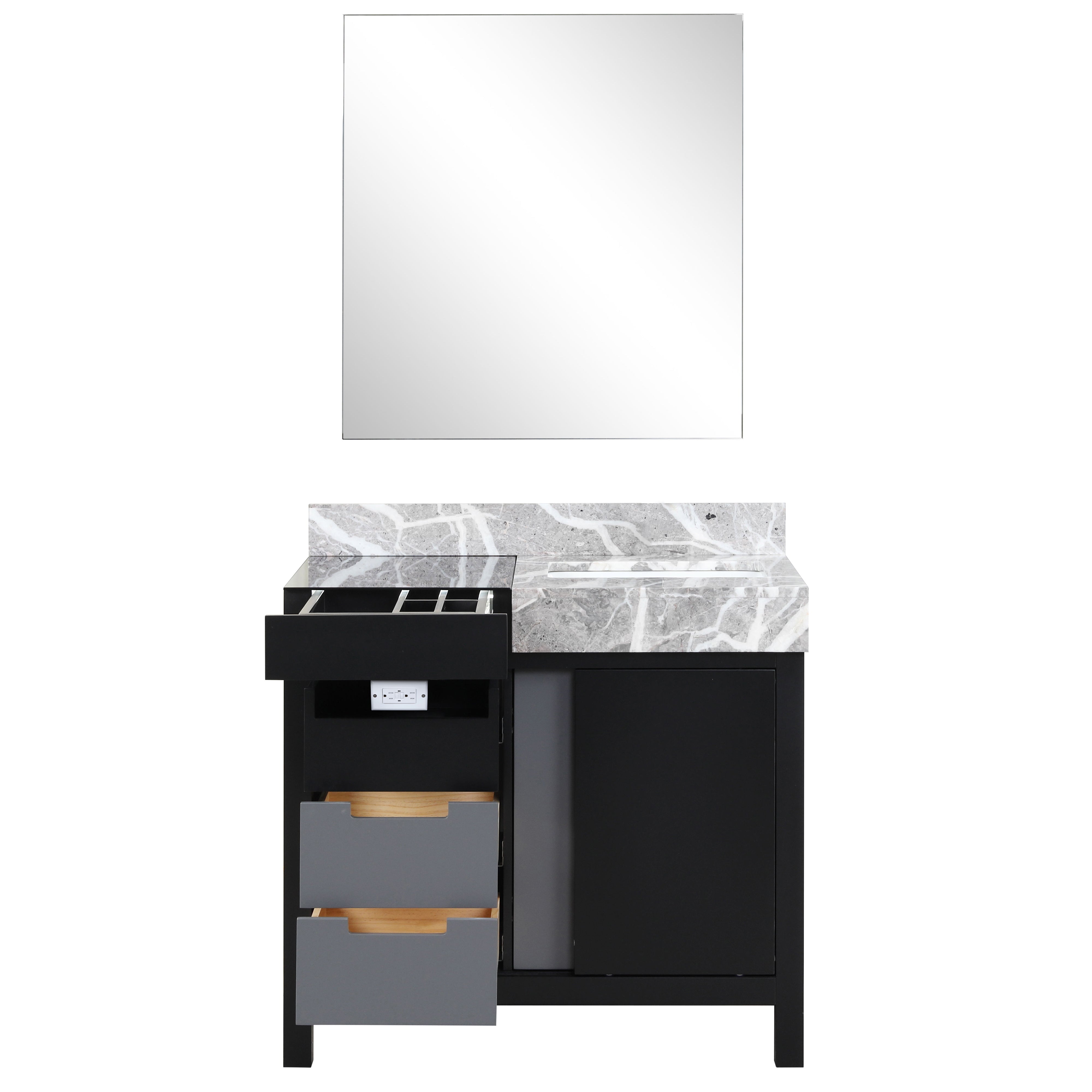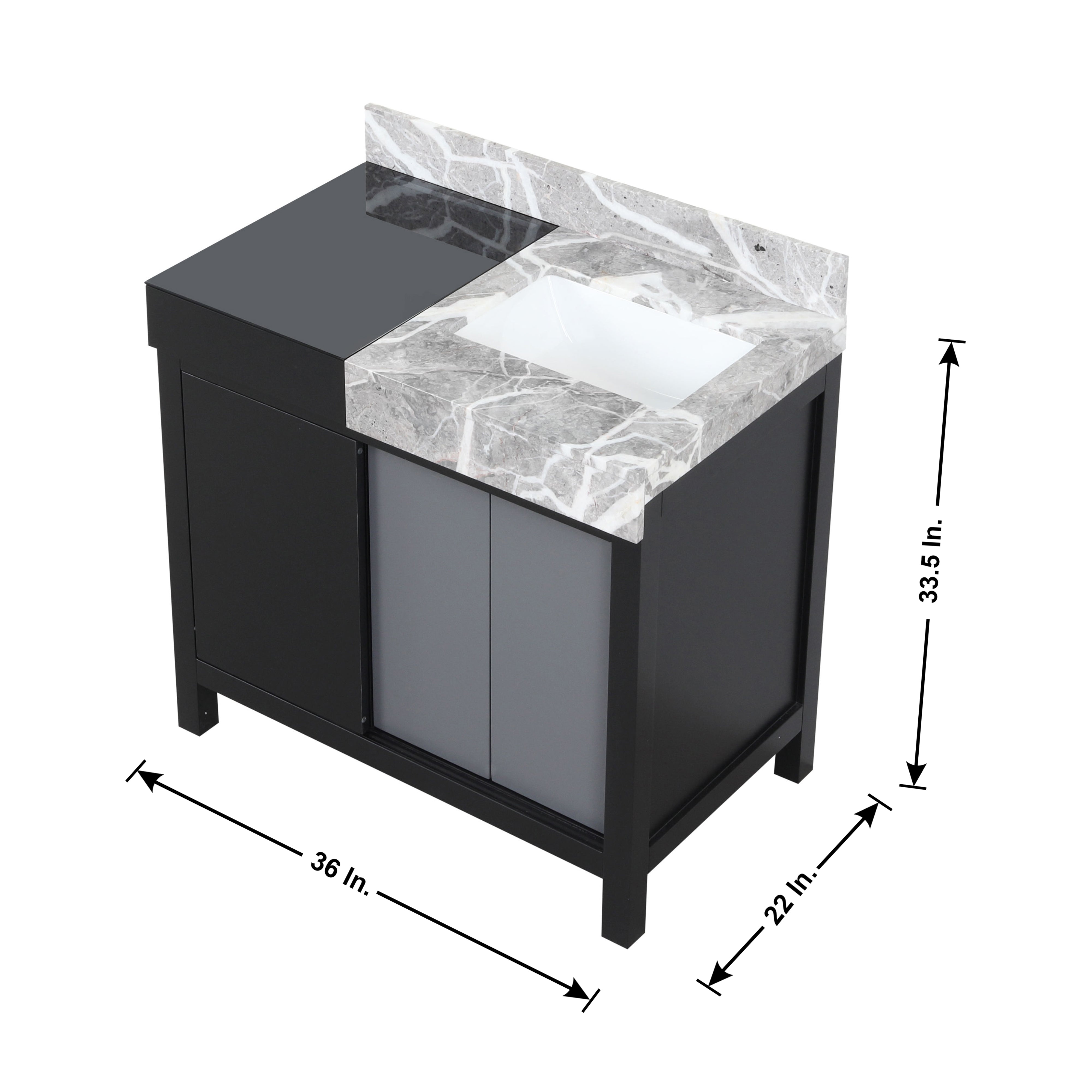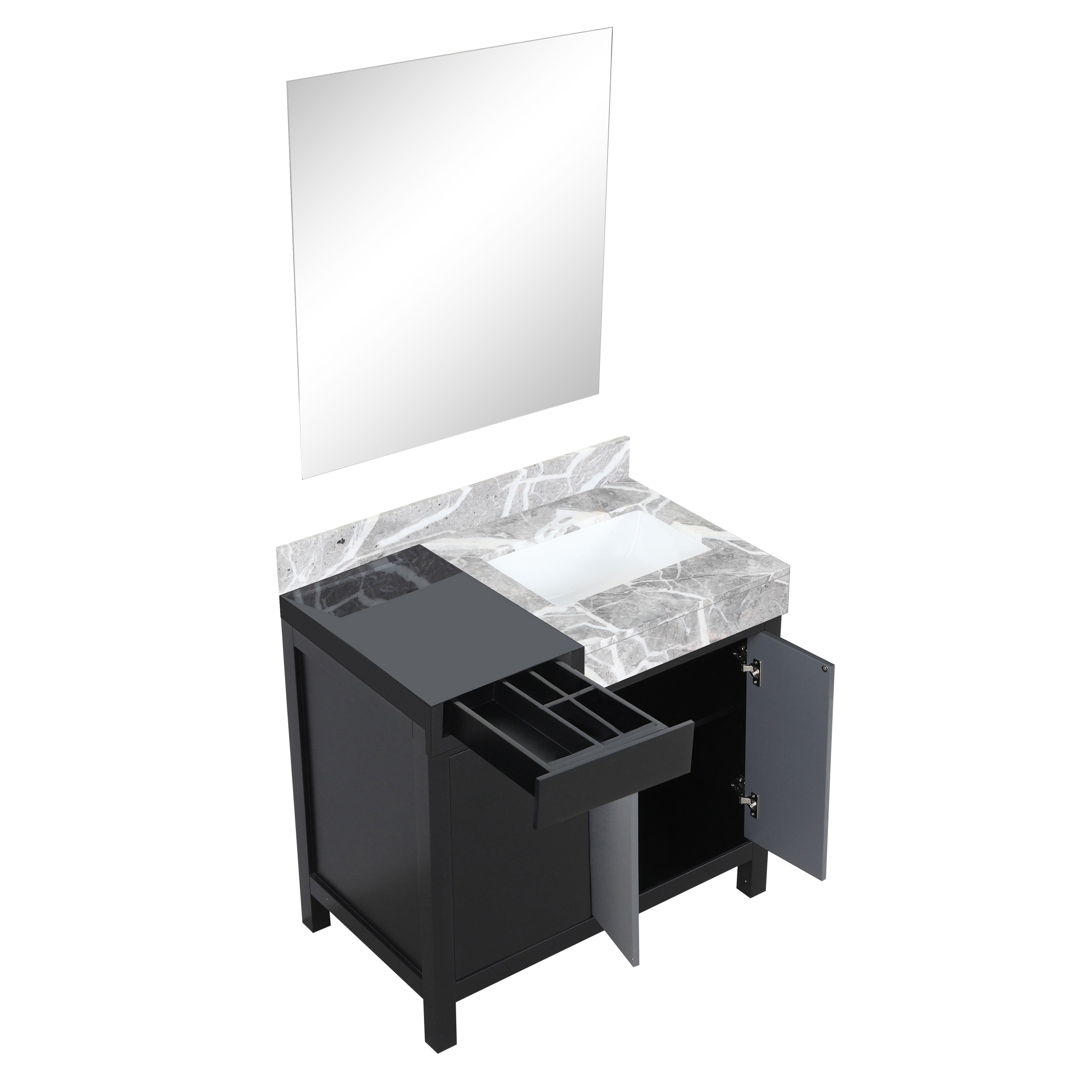 Lexora Zilara 36" Black and Grey Vanity, Castle Grey Marble Top, White Square Sink, and 30" Frameless Mirror - LZ342236SLISM30