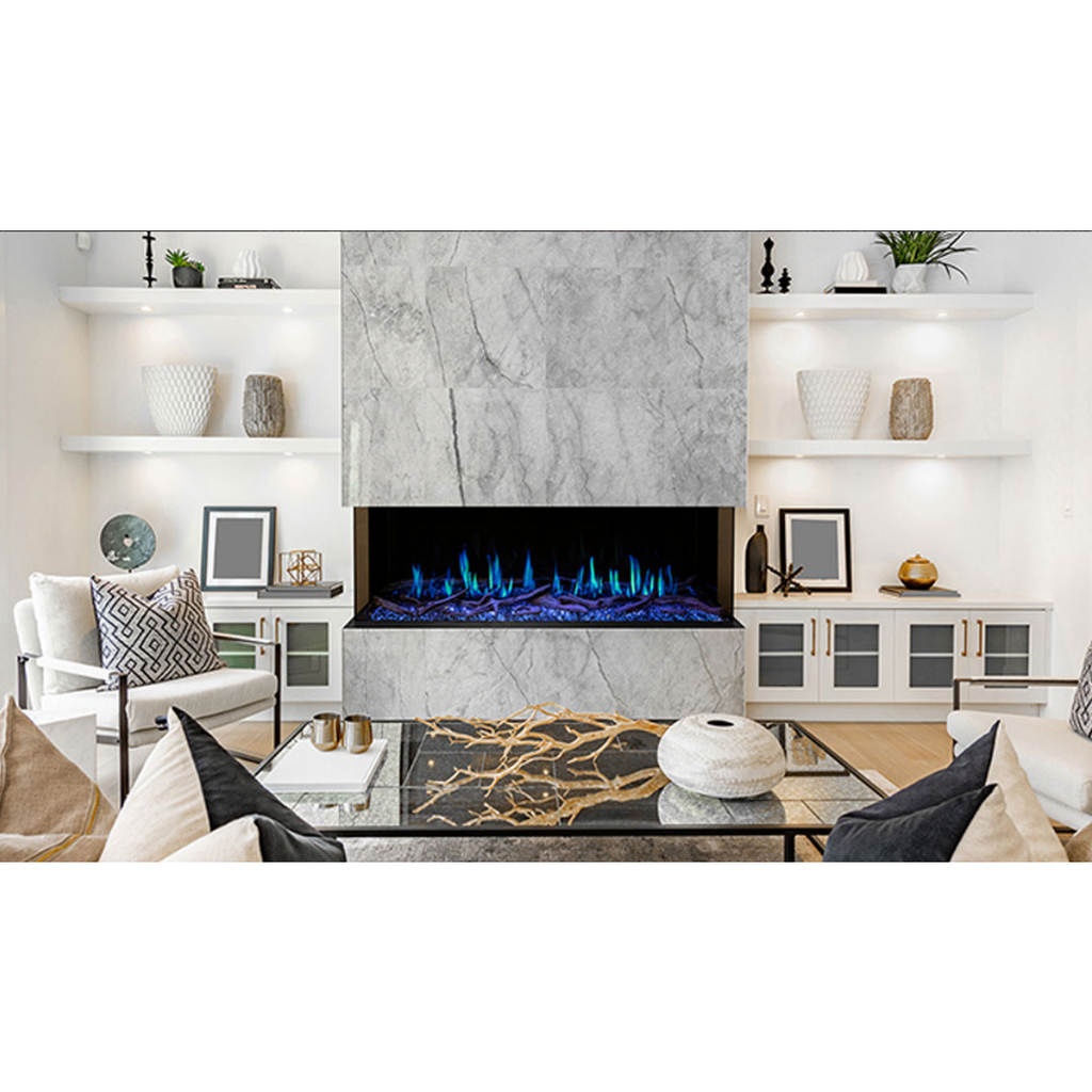 The Orion Multi is an electric fireplace that features the latest Heliovision flame technology, which creates the most life-like fire in an electric fireplace. With three flame choices and color options for the flame, embers, and downlighting, the Orion Multi offers 18 different flame color displays, making every presentation brilliant. The Heliovision technology ensures that the image quality is consistent no matter where you stand or sit.