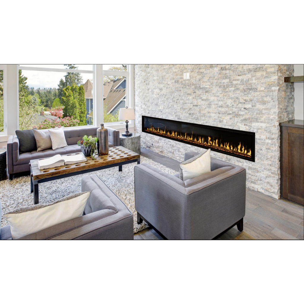 Multi-Sided Electric Fireplace Featuring NEW HELIOVISION™ Flame Technology. One Fireplace Fits All. Our Orion Linear Electric Fireplace with the Most Versatile Installation Options.