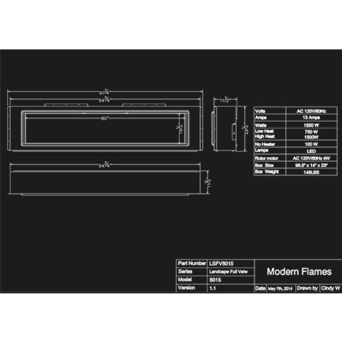 80" Landscape Fullview 2 Built In Electric Fireplace Specifications