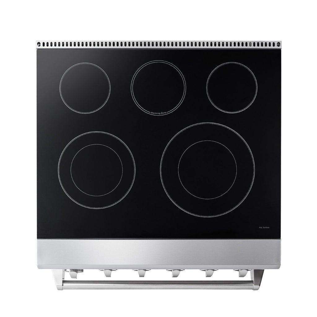 Five Heating Elements - Five-element cooktop gives you the ultimate cooking flexibility with a powerful radiant cooktop. From a 100W warming zone to a high-powered 3,000W quick boil element, this range gives you the power to master any meal