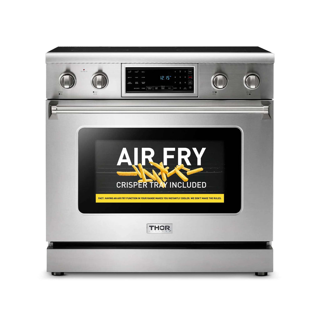 Thor Kitchen 36" Electric Range with 6.0 Cu. Ft. Self-Cleaning Oven, Air Fryer, and Tilt Panel in Stainless Steel (TRE3601)