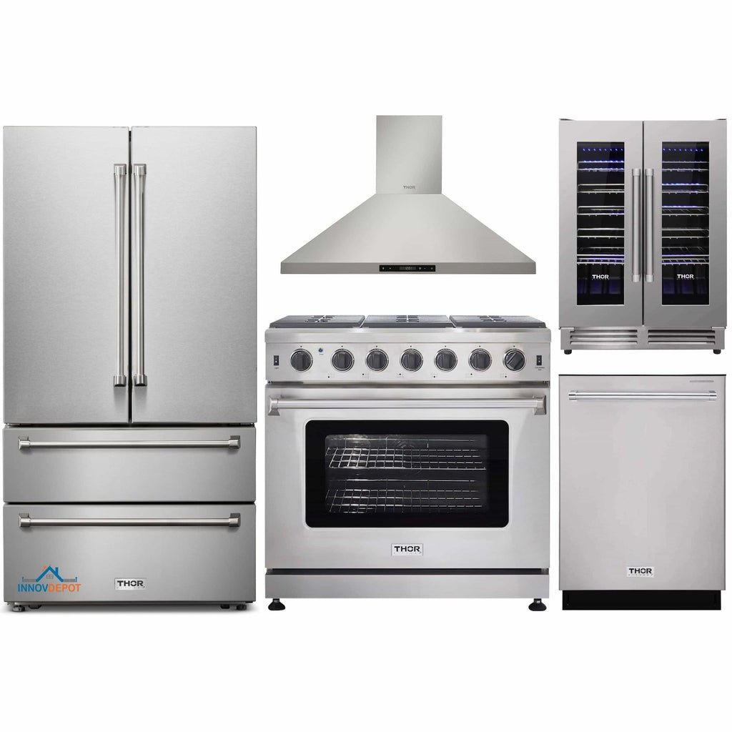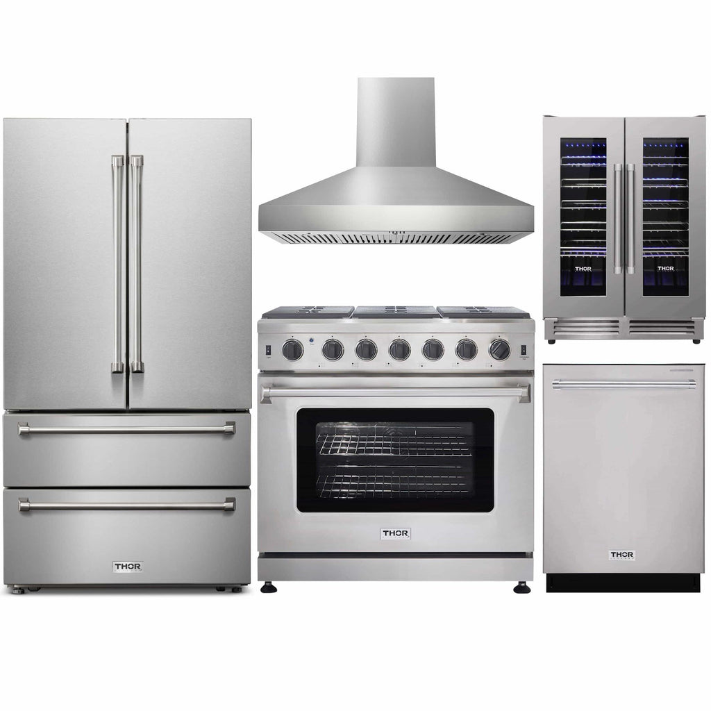 2. Thor Kitchen 36" 22.5 cu. ft Freestanding French Door Refrigerator with Ice Maker in Stainless Steel (TRF3602)