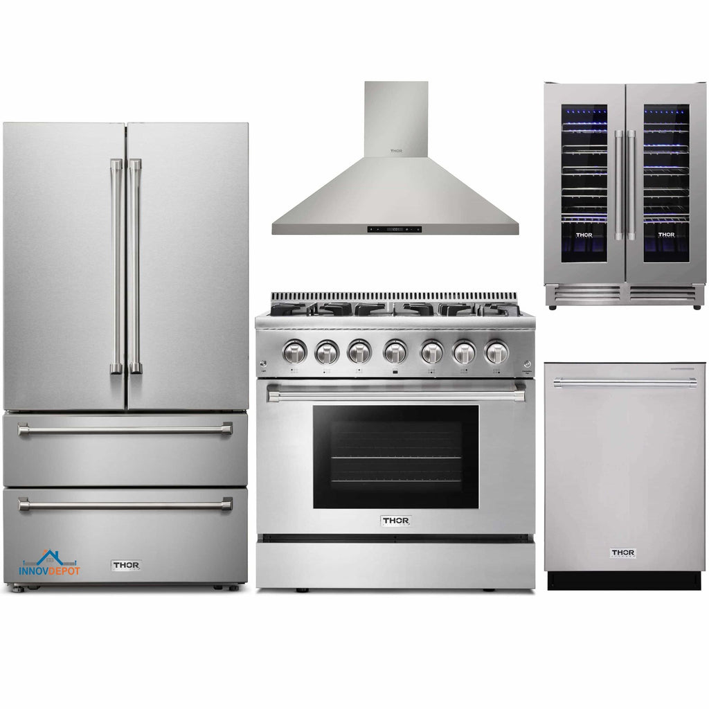 1. Thor Kitchen 36" 5.2 cu. ft. Oven Dual Fuel Range in Stainless Steel (HRD3606U)