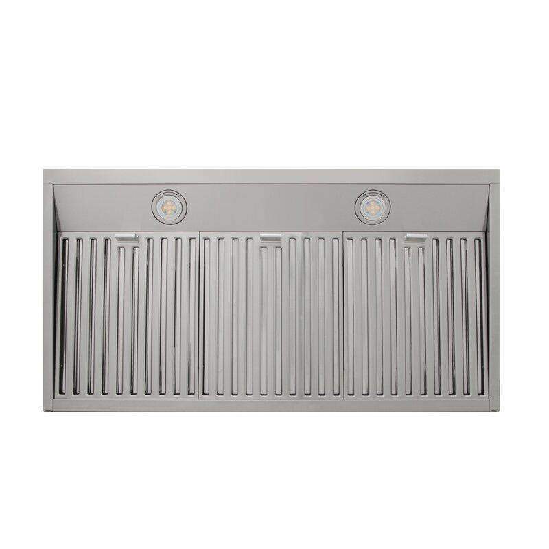 COMMERCIAL-STYLE BAFFLE FILTER - Large, commercial-style 430 grade stainless steel baffle filter maximizes air flow and grease filtering while the hood is in operation