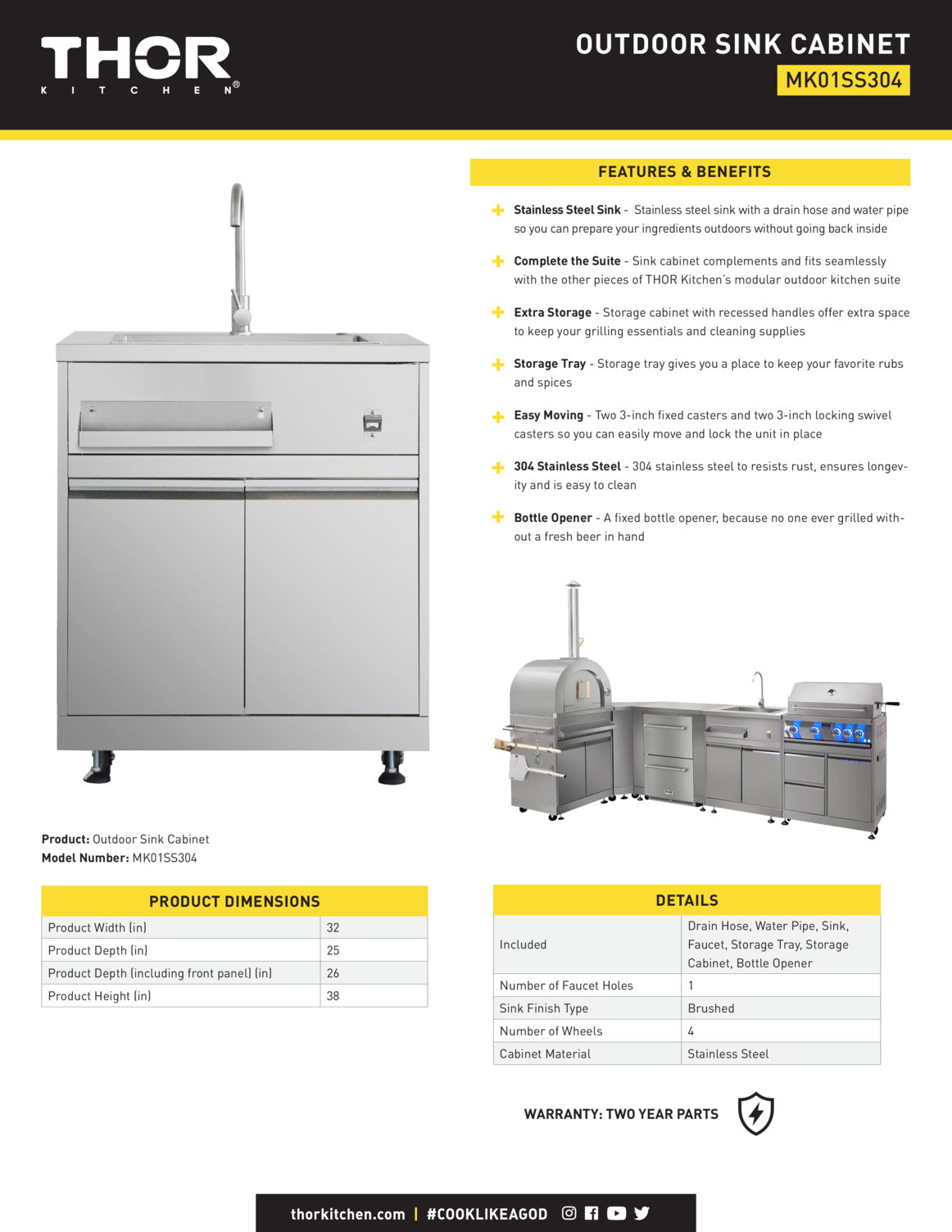 COMPLETE THE SUITE - Sink cabinet complements and fits seamlessly with the other pieces of THOR Kitchen’s modular outdoor kitchen suite