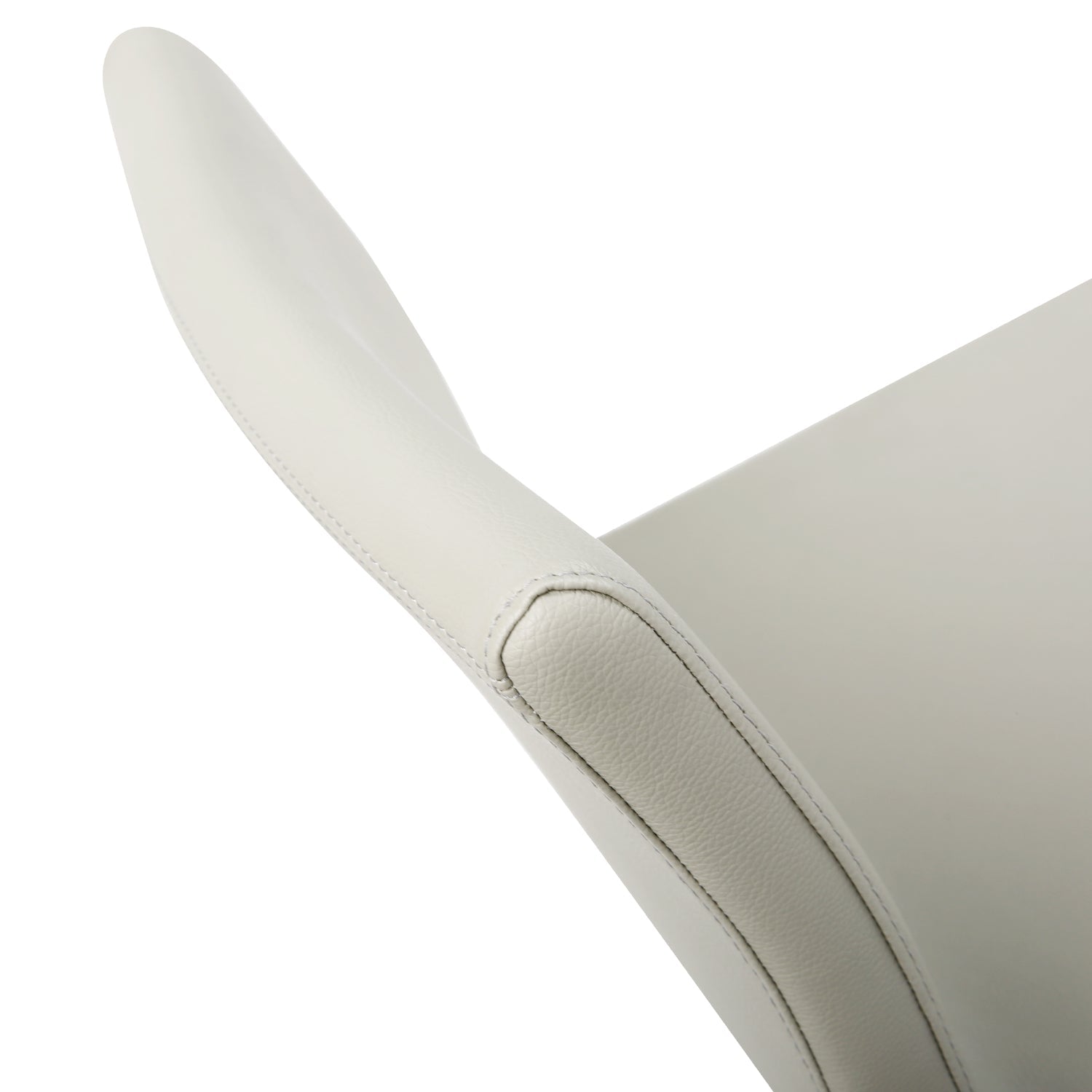 Watson Barstool, Available in Light Grey Faux Leather or White Faux Leather, Adjustable Height with Gas Lift, Rectangular Shape Footrest, and Square Silver Stainless Steel Base.