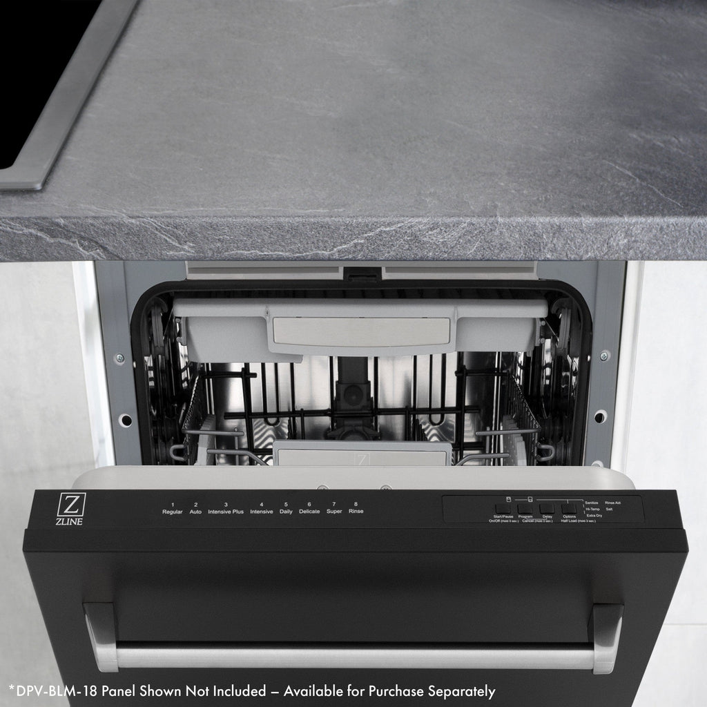 ZLINE 18" Compact Top Control Dishwasher in Custom Panel Ready with Stainless Steel Tub