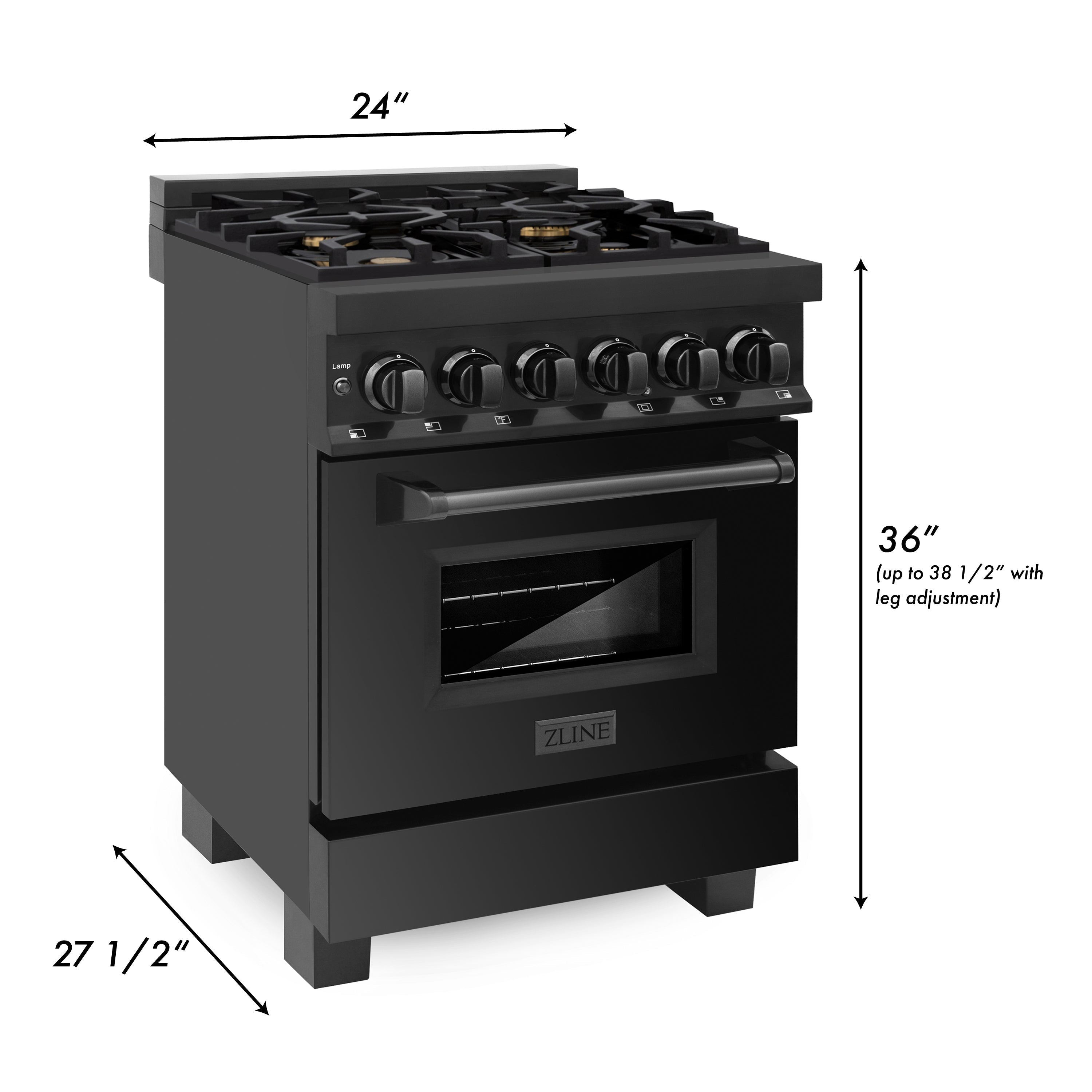 Luxury isn’t meant to be desired - it’s meant to be attainable. Designed in Lake Tahoe, USA, the ZLINE 24" 2.8 cu. ft. Dual Fuel Range with Gas Stove and Electric Oven in Black Stainless Steel with Brass Burners (RAB-BR-24) provides a professional culinary experience by pairing unmatched performance with timeless style. Achieve ZLINE Attainable Luxury excellence with innovative features designed to enhance your kitchen’s capability.