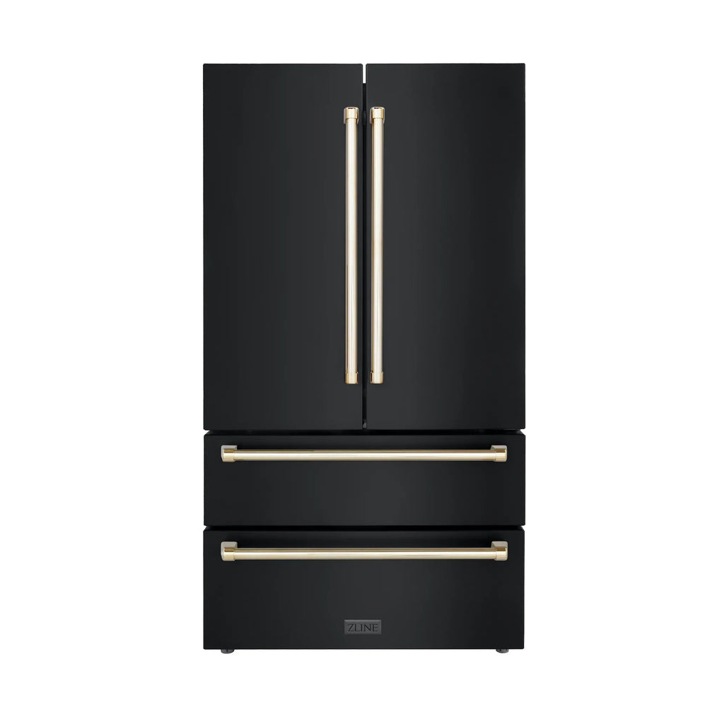 ZLINE 36" Autograph Edition 22.5 cu. ft Freestanding French Door Refrigerator with Ice Maker in Fingerprint Resistant Black Stainless Steel with Accents - RFMZ-36-BS