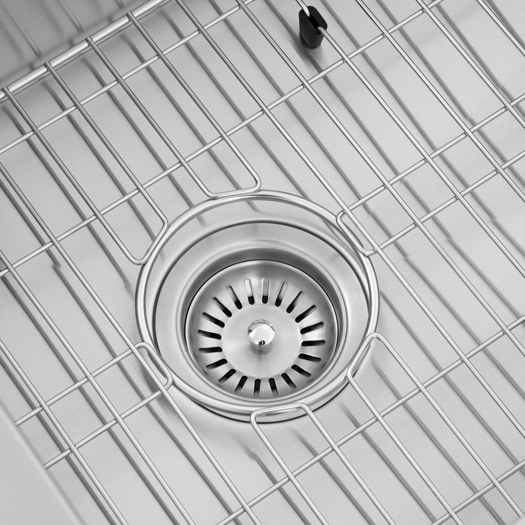- This ZLINE stainless sink comes equipped with: Utility rack resistant to chipping or cracking, Basket Strainer, Microfiber cloth