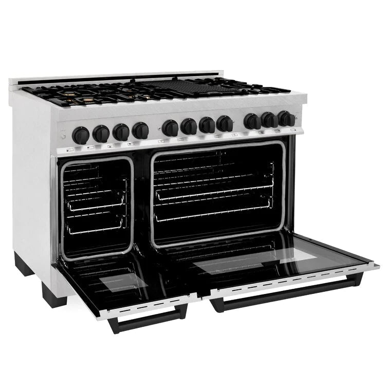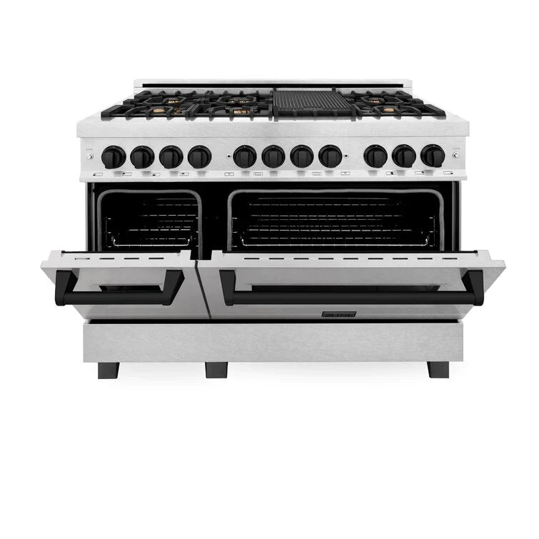 ZLINE Autograph 48 in. Gas Burner/Electric Oven in DuraSnow Stainless Steel with Matte Black Accents, RASZ-SN-48-MB