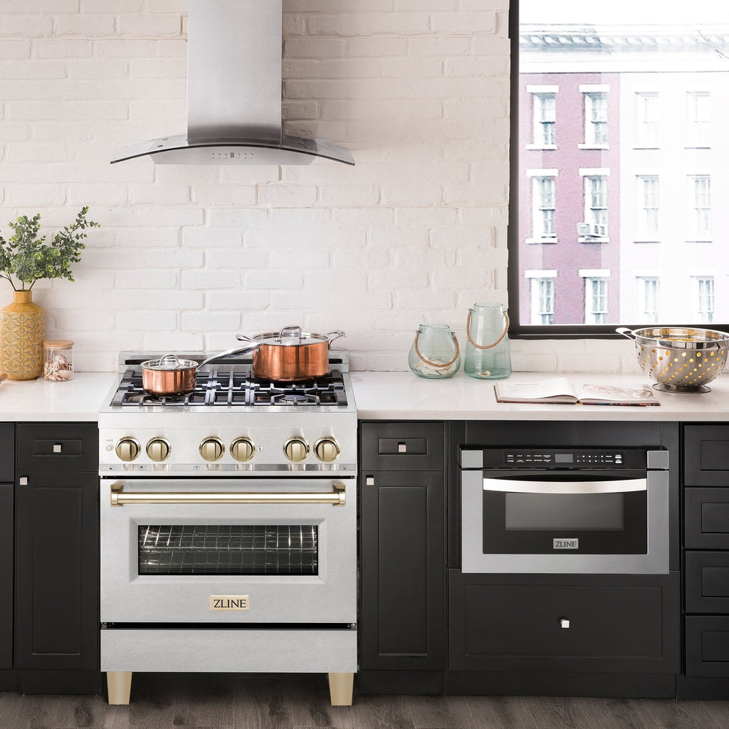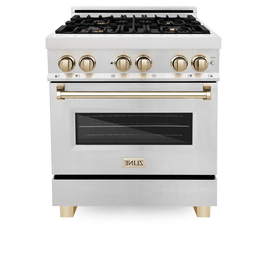ZLINE Autograph Edition 30" 4.0 cu. ft. Dual Fuel Range with Gas Stove and Electric Oven in DuraSnow Stainless Steel with Accents - RASZ-SN-30