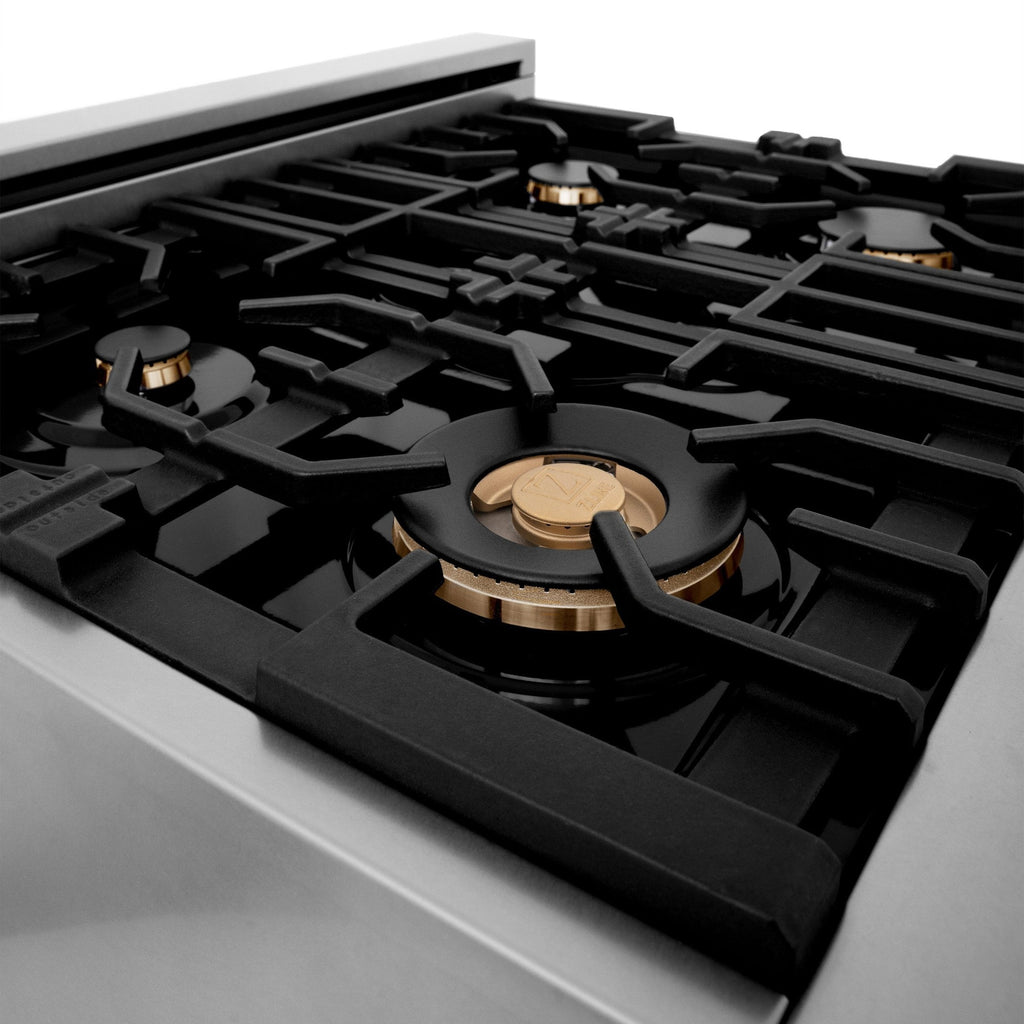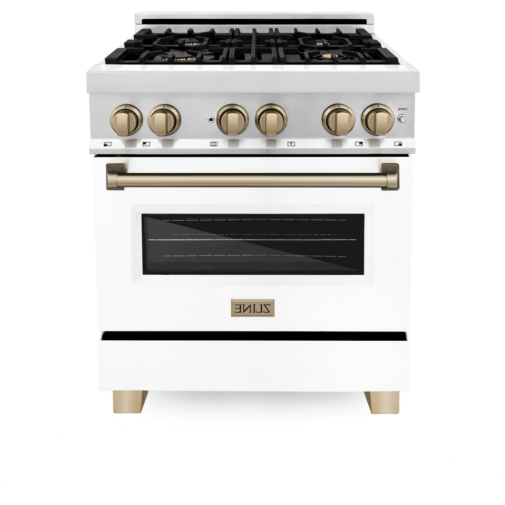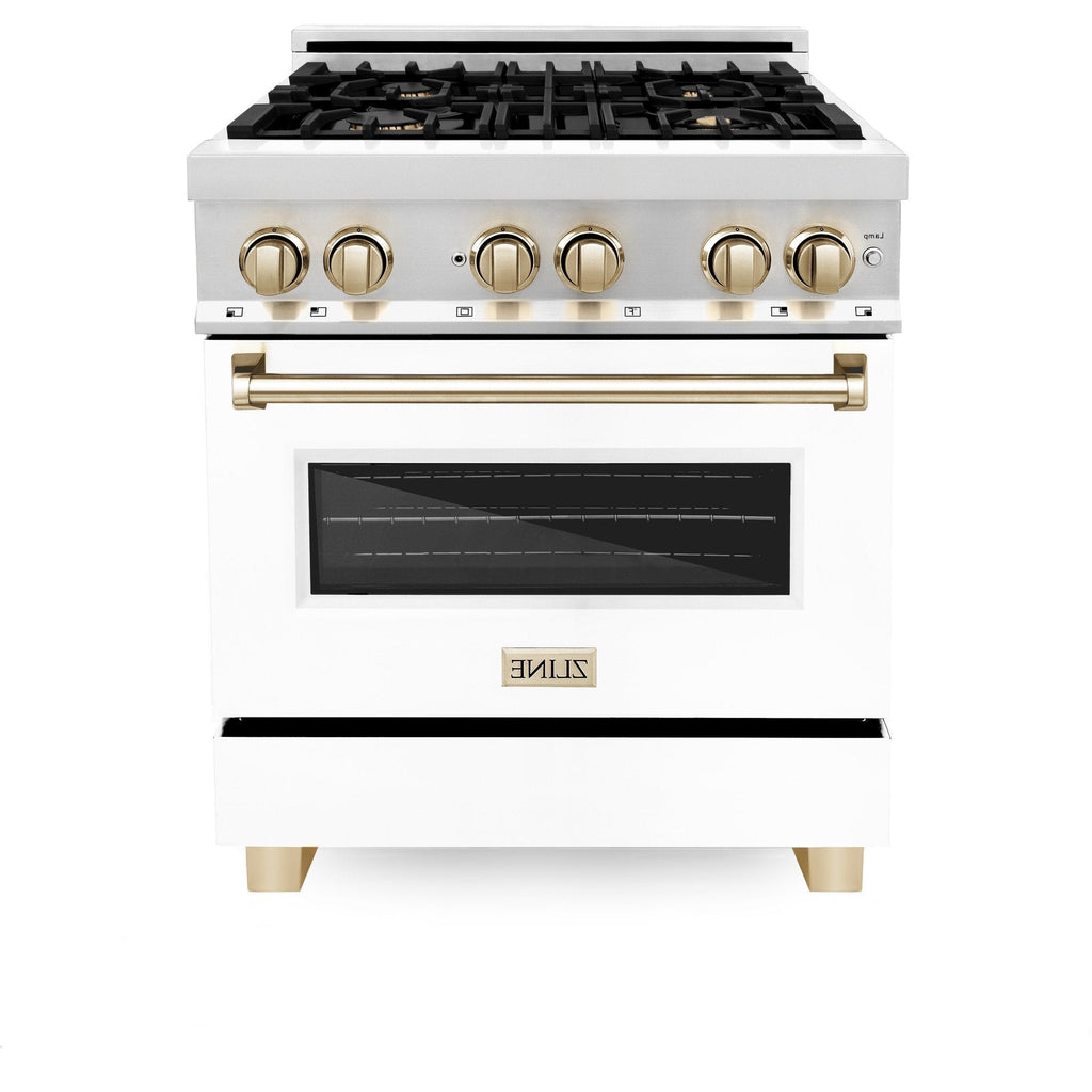ZLINE Autograph Edition 30" 4.0 cu. ft. Dual Fuel Range with Gas Stove and Electric Oven in Stainless Steel with White Matte Door and Accents - RAZ-WM-30