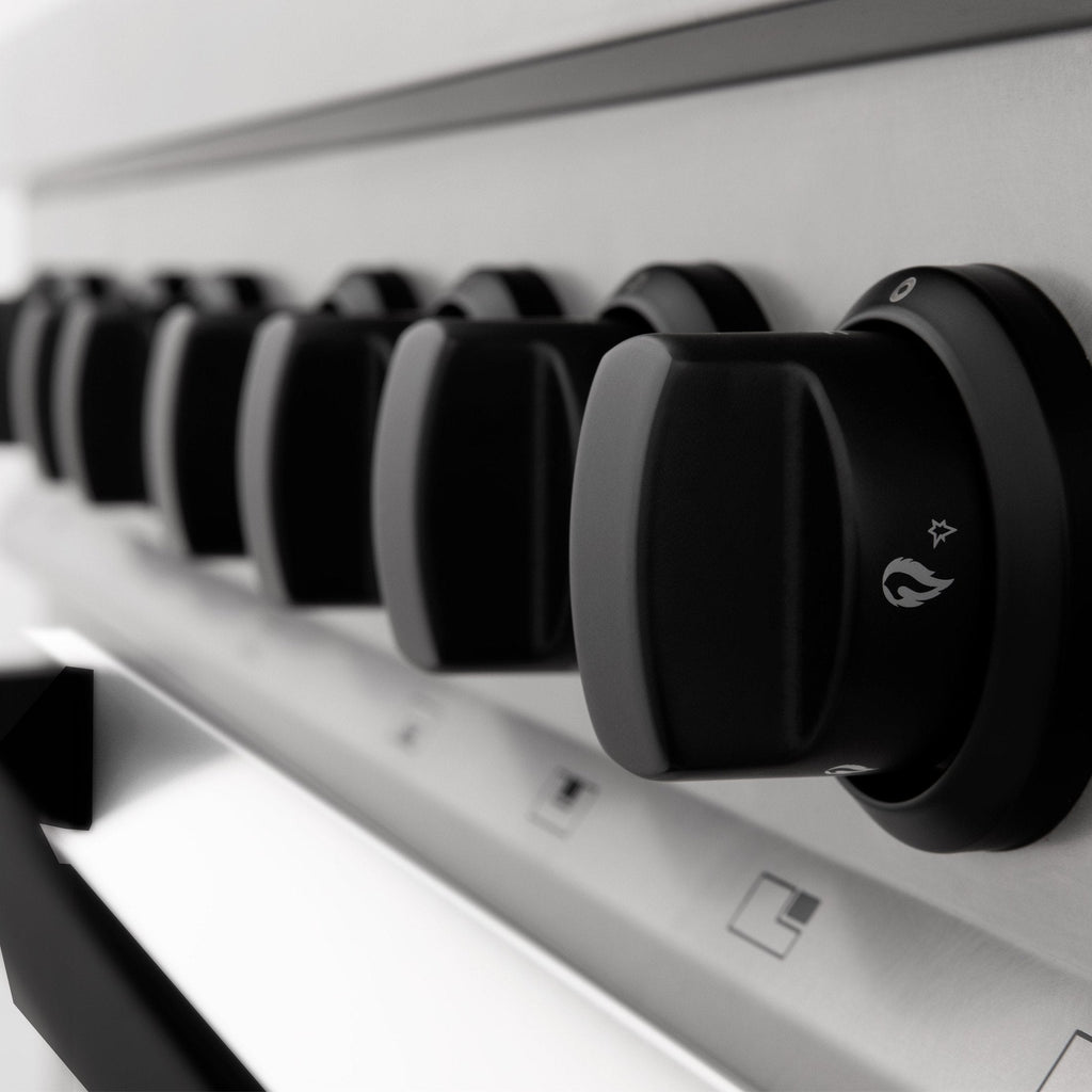 Combining the professional power and functionality of a ZLINE Range with stunning matte black accents, this sophisticated line of professional ranges brings a new meaning of elegance. Create an unforgettable kitchen unique to your style with matte black knobs, handles, legs, and brass burners.