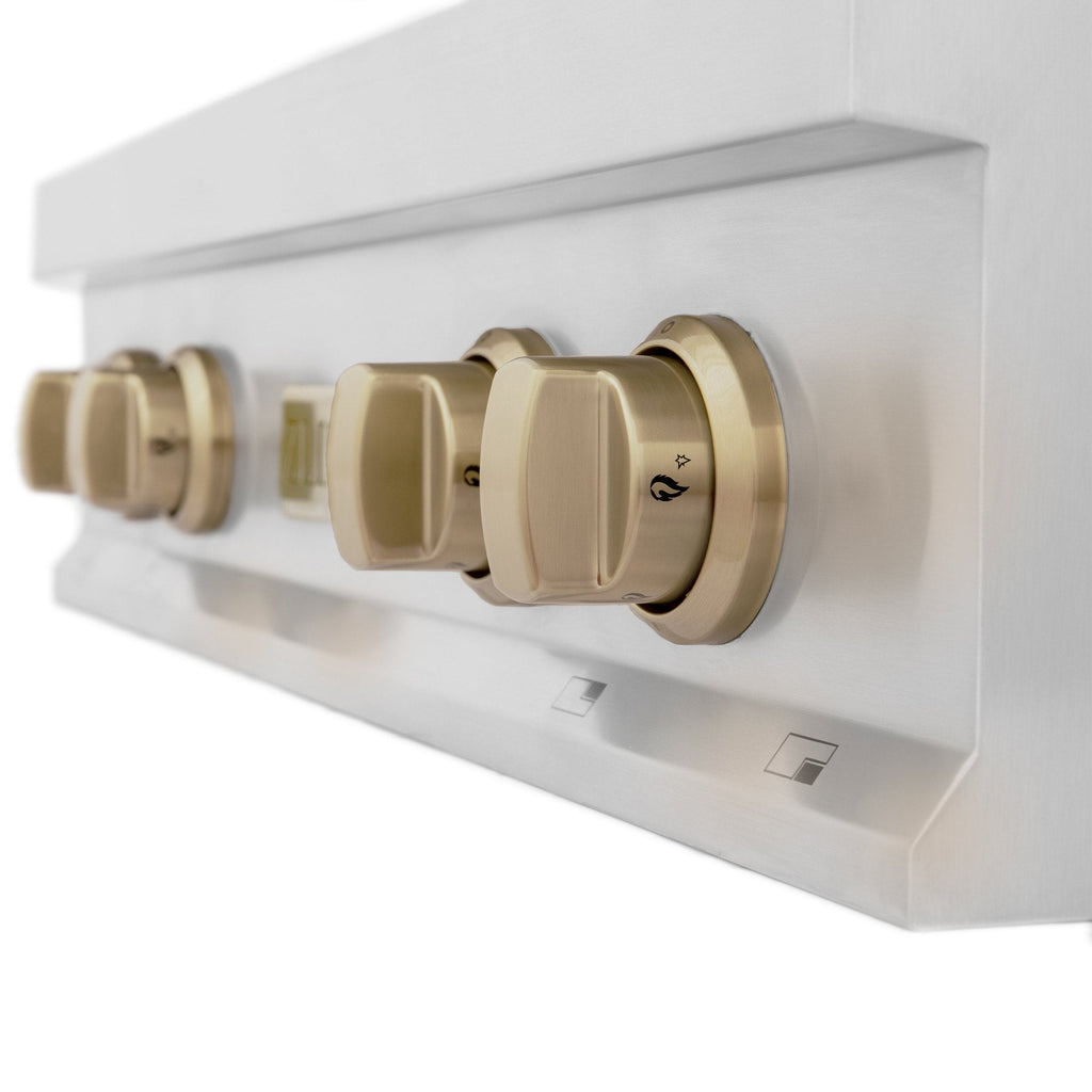ZLINE Autograph Edition 30 in. Porcelain Rangetop with 4 Gas Burners in Stainless Steel and Gold Accents, RTZ-30-G
