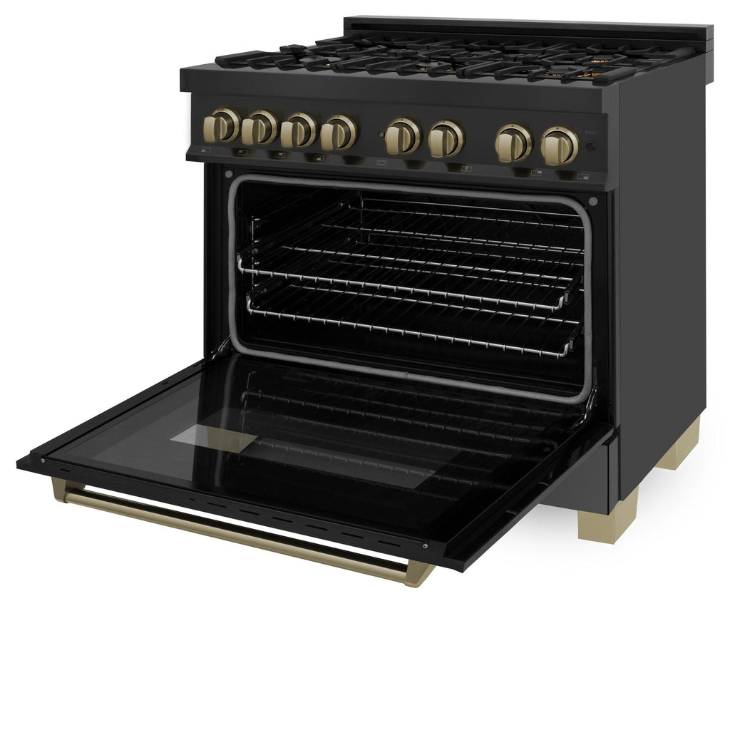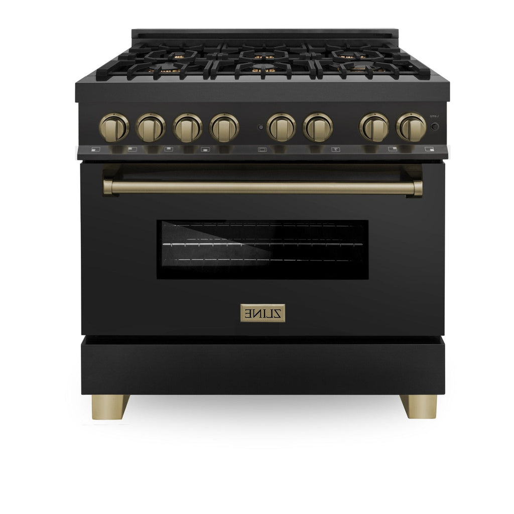 ZLINE Autograph Edition 36" 4.6 cu. ft. Dual Fuel Range with Gas Stove and Electric Oven in Black Stainless Steel with Accents - RABZ-36
