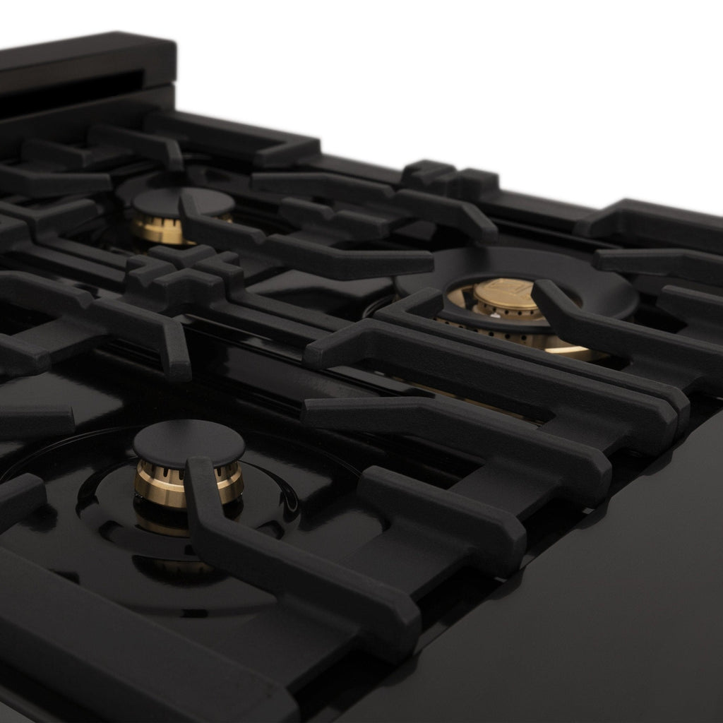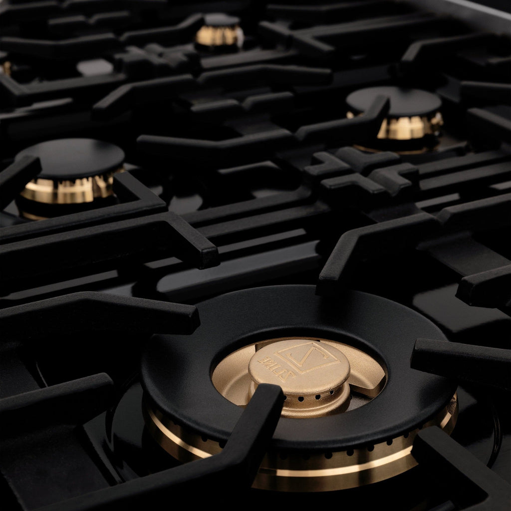 - ZLINE's Italian brass burners give this range an elevated, timeless pop of color while providing enhanced cooking benefits such as superior heat retention and even flame distribution.