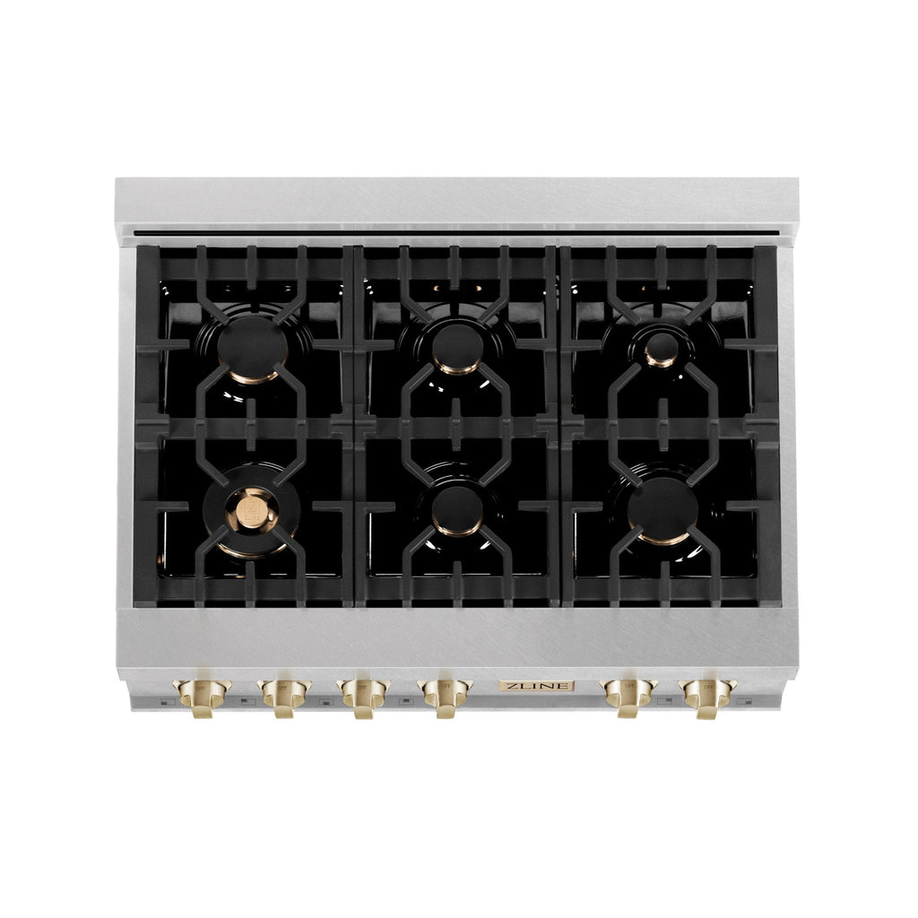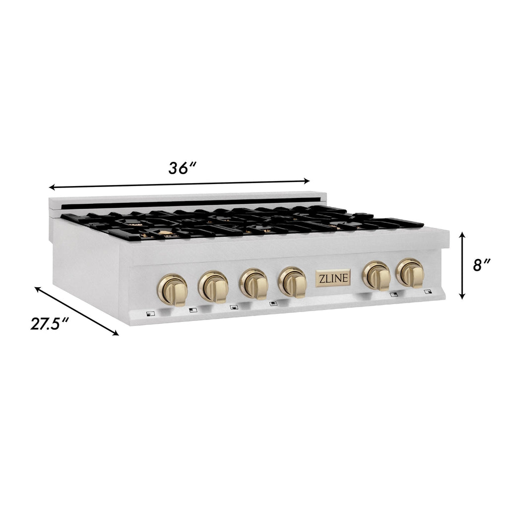 ZLINE Autograph Edition 36" Porcelain Rangetop with 6 Gas Burners in Dura Snow Stainless Steel With Accents - RTSZ-36