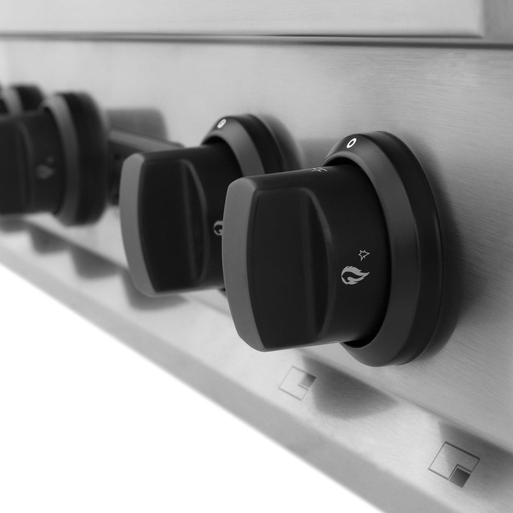 Combining the professional power and functionality of a ZLINE Rangetop with stunning champagne bronze accents, this sophisticated line of professional rangetops brings a new meaning of elegance. Create an unforgettable kitchen unique to your style with matte black knobs and brass burners.