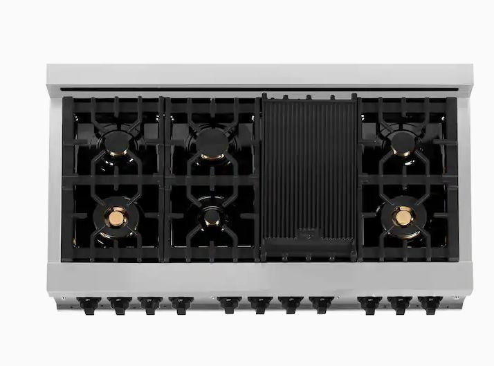 - Assembled with the highest quality materials, this range features 6 individual burners and 1 Fish Burner, a hand-finished stainless steel one piece cook top and electronic spark ignition for all burners