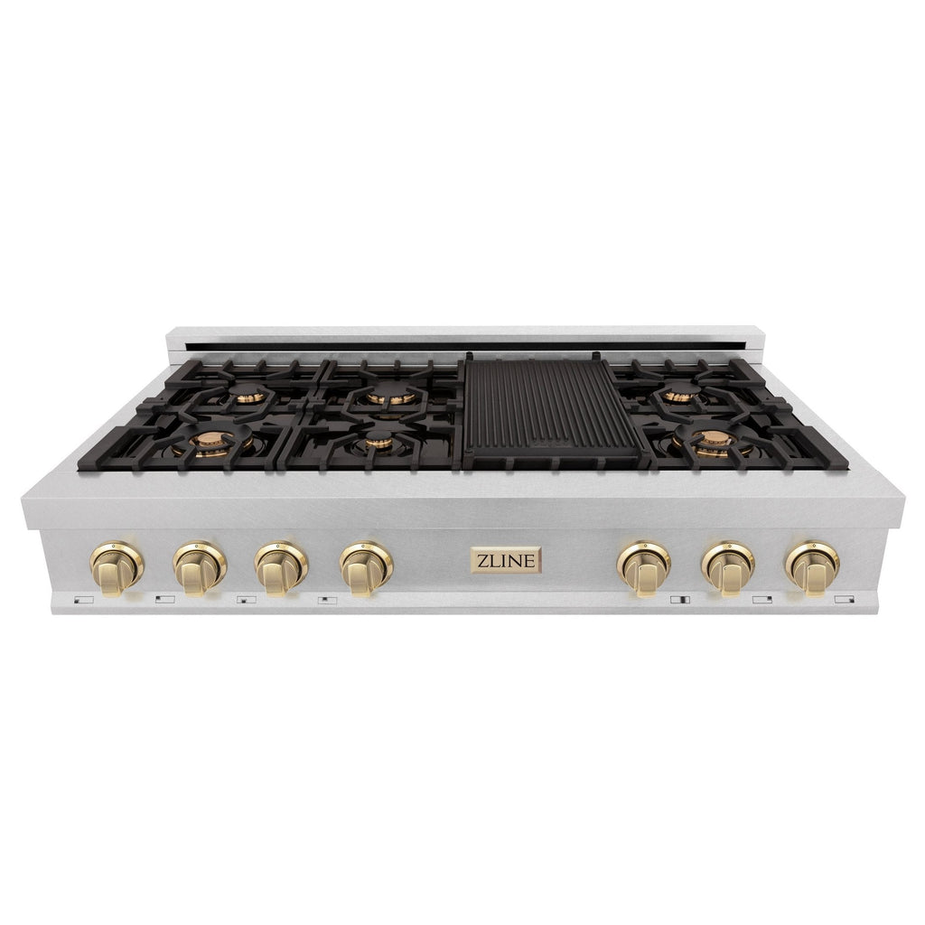 ZLINE Autograph Edition 48" Porcelain Rangetop with 7 Gas Burners in Dura Snow Stainless Steel With Accents - RTSZ-48