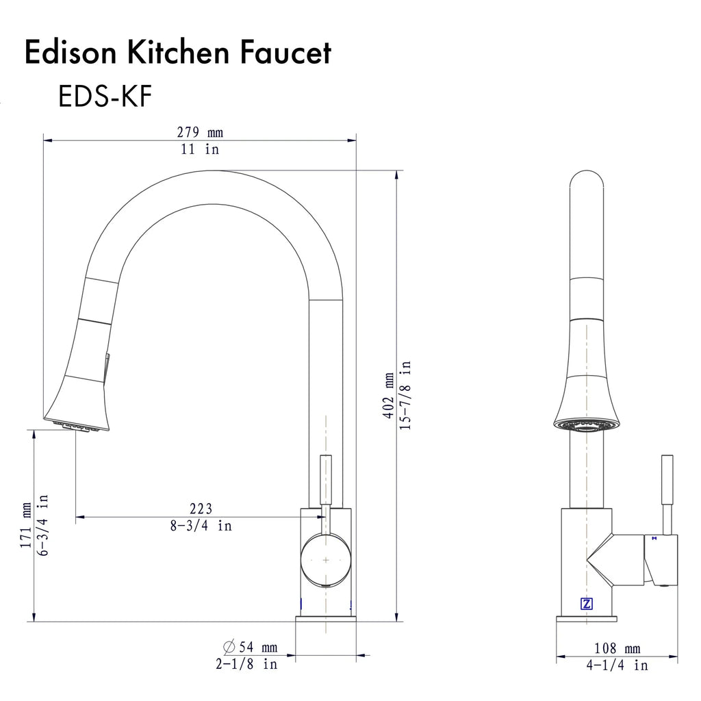 The ZLINE Edison Kitchen Faucet is manufactured with the highest quality materials on the market - making it long-lasting and durable. We have focused on designing each faucet to be functionally efficient while offering a sleek design, making it a beautiful addition to any kitchen. While aesthetically pleasing, the Edison Kitchen Faucet offers a hassle-free washing experience, with 360 degree rotation and a spring loaded pressure adjusting spray wand. At 1.8 gal per minute the Edison Kitchen Faucet provides the perfect amount of flexibility and water pressure to save you time.