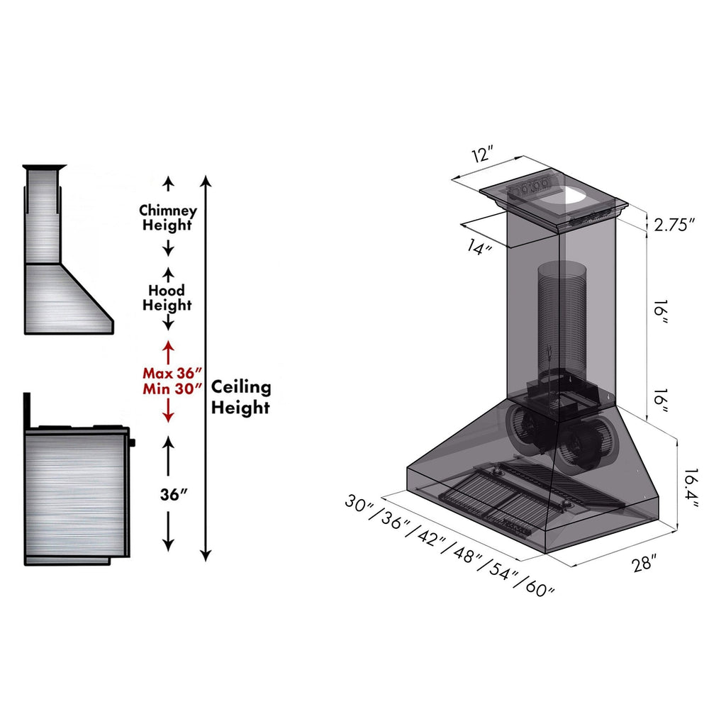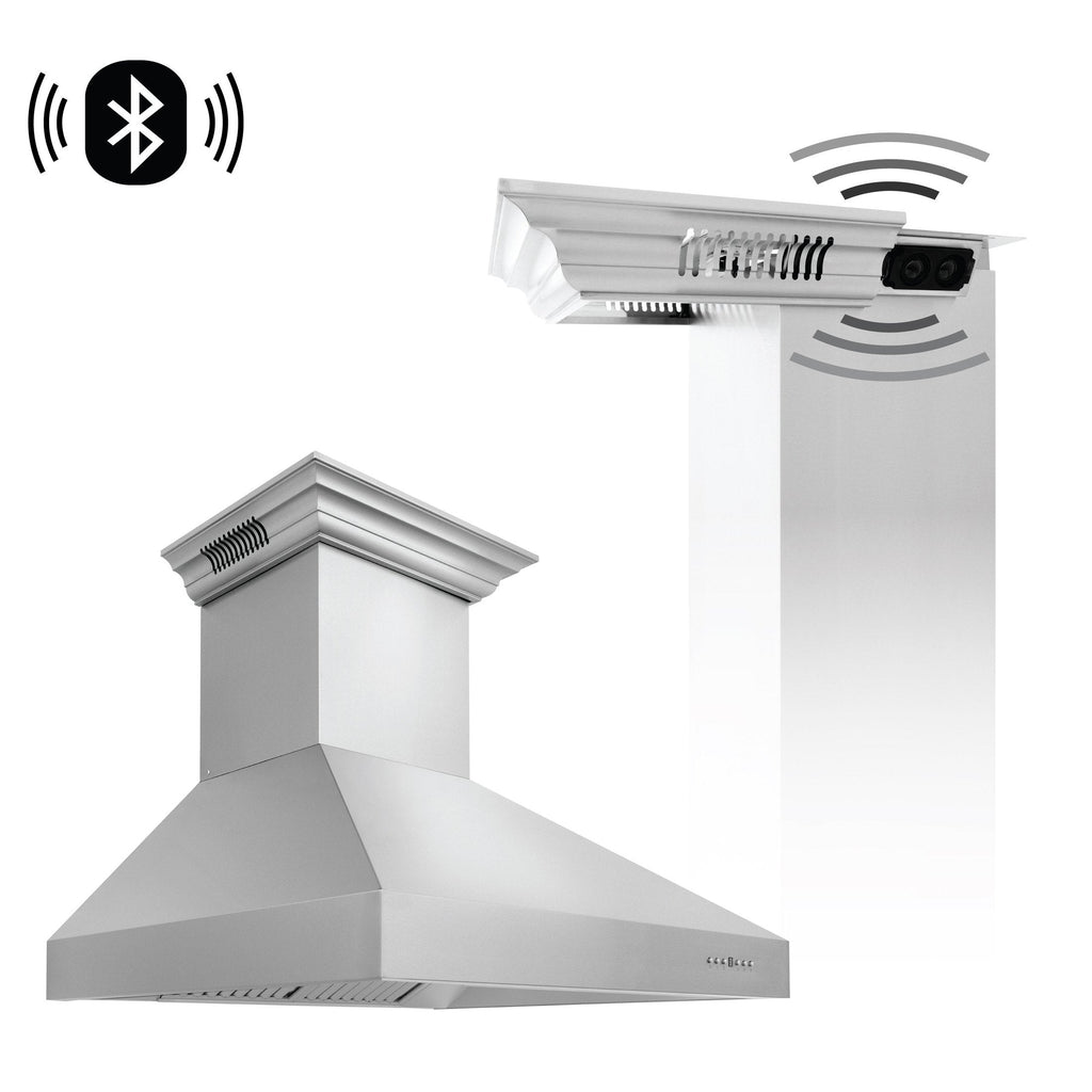 ZLINE Professional Wall Mount Range Hood in Stainless Steel with Built-in CrownSound Bluetooth Speakers - 697CRN-BT