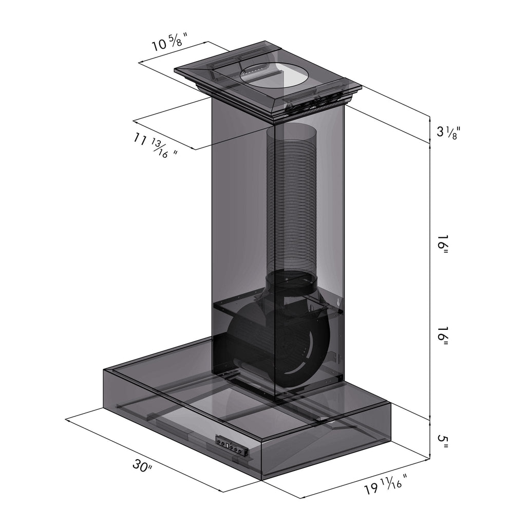 ZLINE Professional Wall Mount Range Hood in Stainless Steel with Crown Molding - KECOMCRN-30