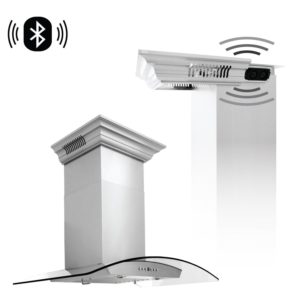 ZLINE Wall Mount Range Hood in Stainless Steel with Built-in CrownSound Bluetooth Speakers - KZCRN-BT